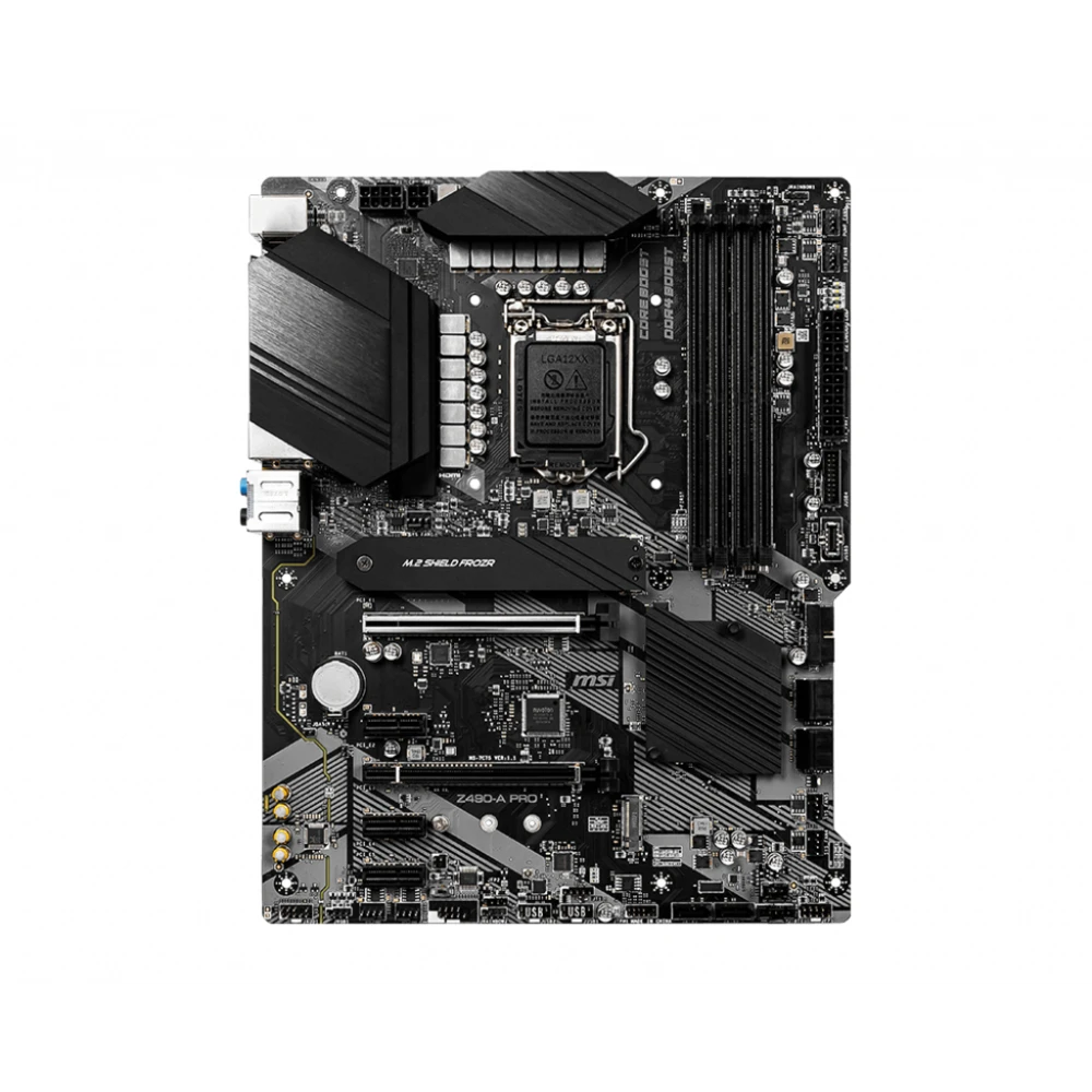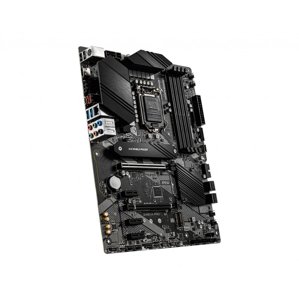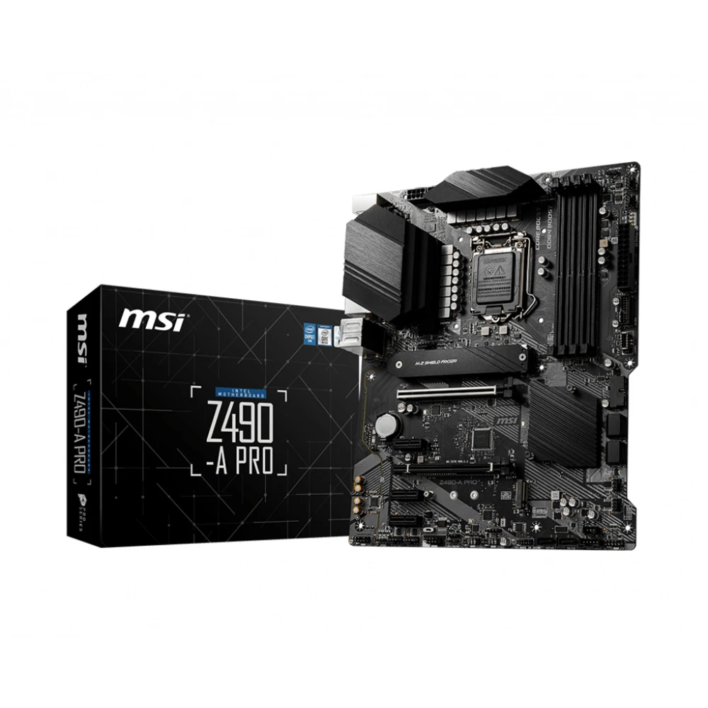 MSI Z490-A PRO Motherboard 'ATX, LGA1200, DDR4, LAN, USB 3.2 Gen2, Type C, M.2, DisplayPort, HDMI, Gen 4 Ready, 10th Gen Intel Core'. Processor manufacturer: Intel, Processor socket: LGA 1200 (Socket H5), Compatible processor series: Intel® Core™ i3, Intel® Core™ i5, Intel® Core™ i9, Intel® Pentium®. Supported memory types: DDR4-SDRAM, Maximum internal memory: 128 GB, Memory slots type: DIMM. Supported storage drive interfaces: M.2, SATA III, Supported storage drive types: HDD & SSD, RAID levels: 0, 1, 5, 10. Parallel processing technology support: Crossfire. Ethernet interface type: 2.5 Gigabit Ethernet, Fast Ethernet, Gigabit Ethernet, LAN controller: Realtek RTL8125B