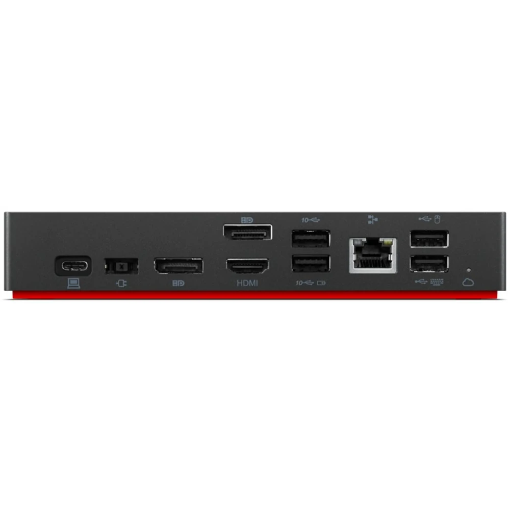 Lenovo ThinkPad Universal Thunderbolt 4 Smart Dock. Connectivity technology: Wired, Host interface: Thunderbolt 4, Headphone connectivity: 3.5 mm. Product colour: Black, Data transfer rate: 40 Gbit/s, Maximum refresh rate: 60 Hz. Power source type: DC, Input current: 6.75 A, Power consumption (max): 100 W. Width: 220 mm, Depth: 80 mm, Height: 30 mm. Package width: 270 mm, Package depth: 195 mm, Package height: 85 mm