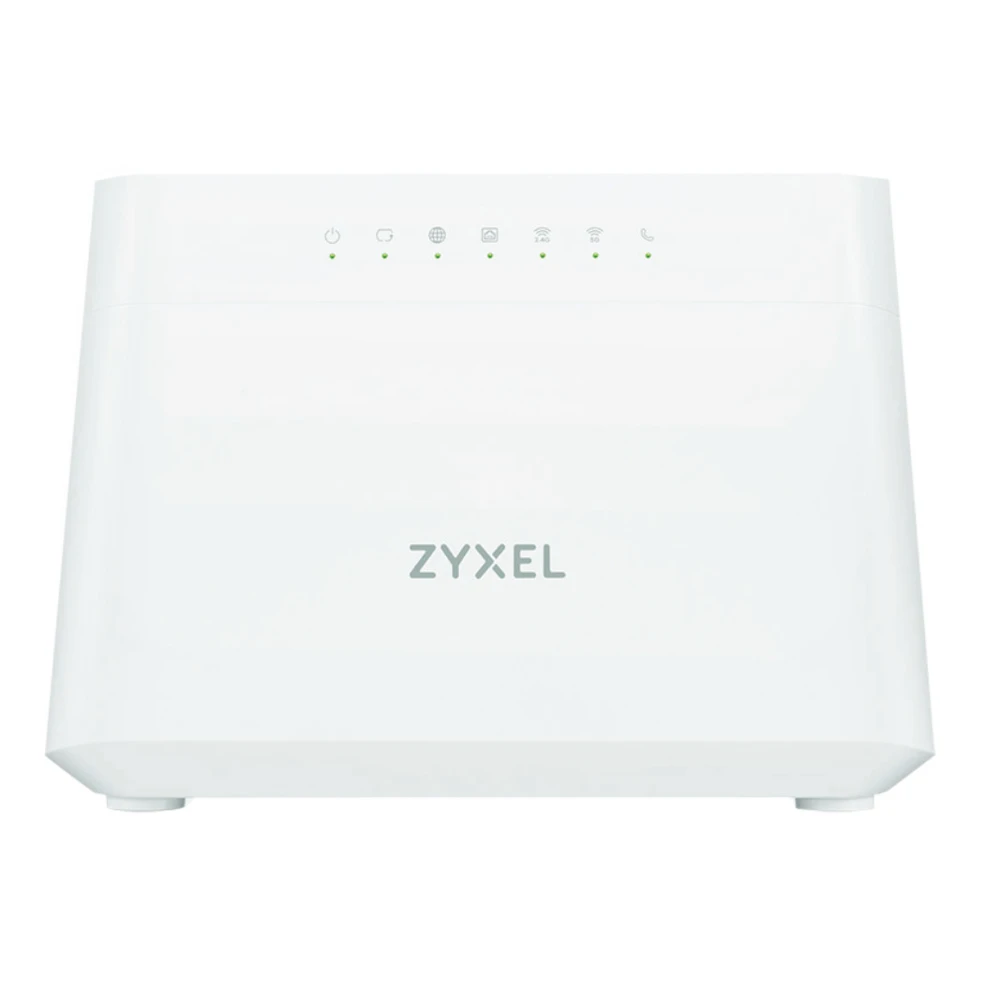 Zyxel DX3301-T0. Wi-Fi band: Dual-band (2.4 GHz / 5 GHz), Top Wi-Fi standard: Wi-Fi 6 (802.11ax), Wi-Fi standards: Wi-Fi 6 (802.11ax). Ethernet LAN interface type: Gigabit Ethernet, Ethernet LAN data rates: 1000 Mbit/s, Networking standards: IEEE 802.1Q. Voice codecs: G.711a, G.722, G.726, G.729. Product type: Tabletop router, Product colour: White, LED indicators: LAN, Power, WAN, WLAN, WPS. Antenna design: Internal