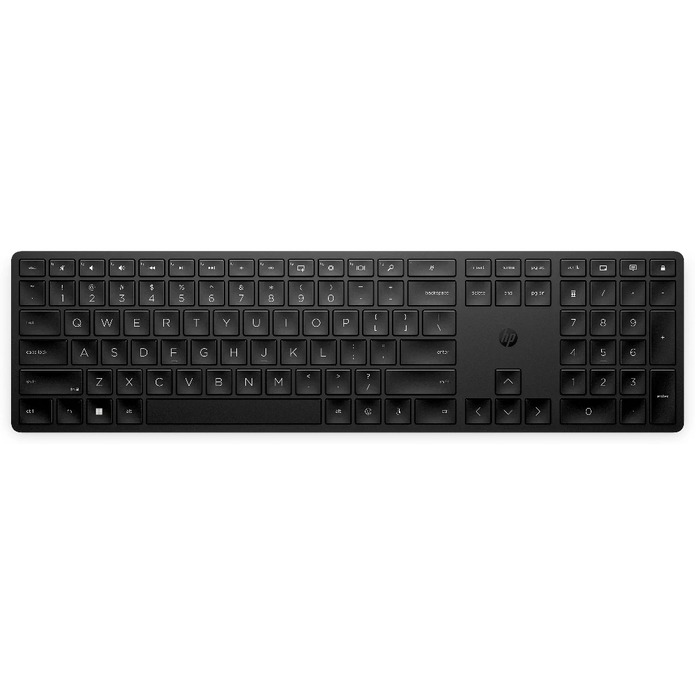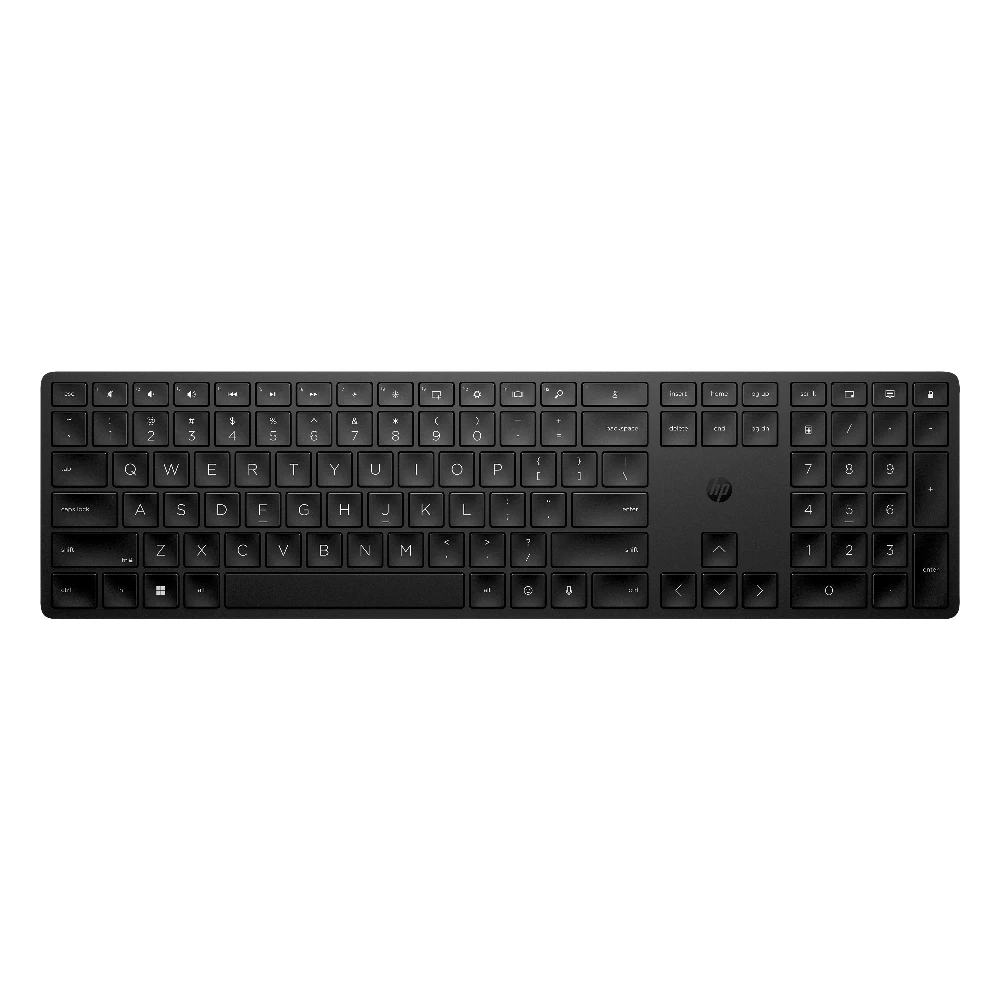 HP 455 Programmable Wireless Keyboard. Keyboard form factor: Full-size (100%), Connectivity technology: Wireless, Device interface: RF Wireless, Keyboard key switch: Membrane, Recommended usage: Home. Product colour: Black