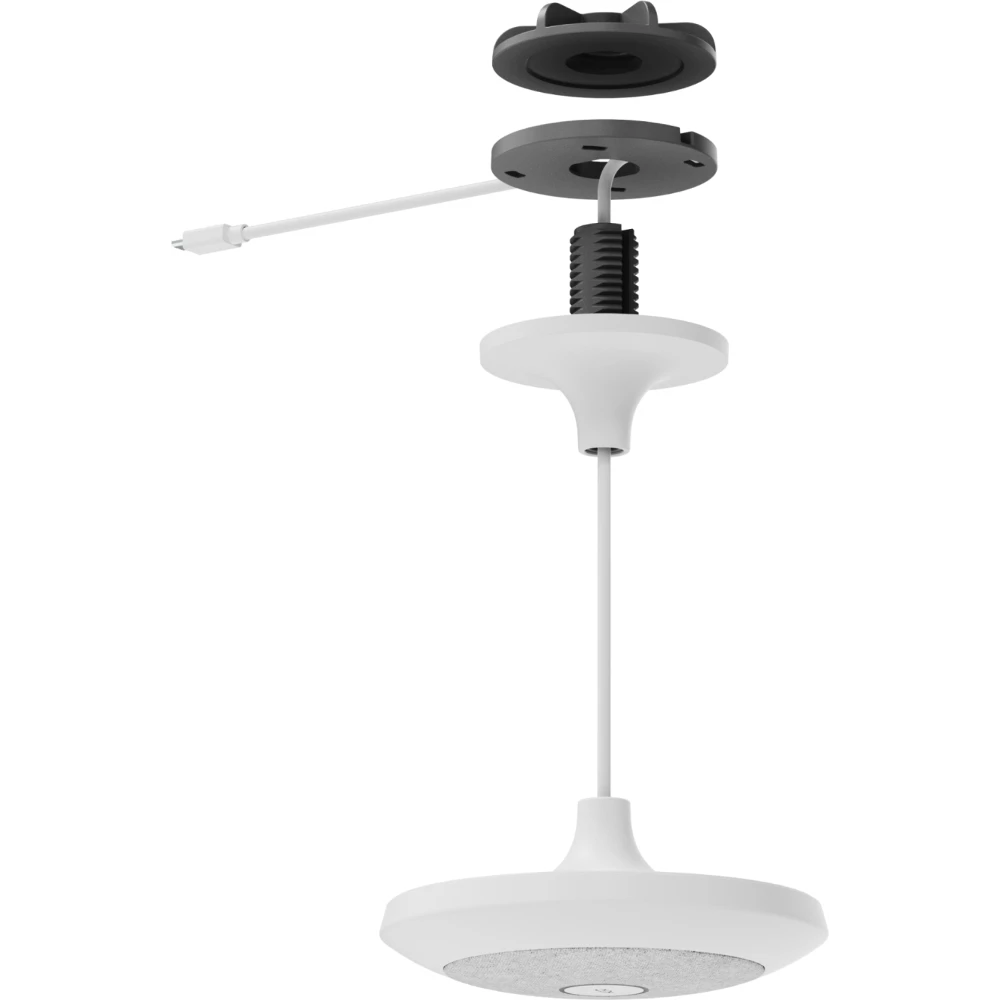 Logitech Mic Pod Pendant Mount. Product type: Suspension mount, Brand compatibility: Logitech, Compatibility: Rally Mic Pod. Diameter: 14.5 cm, Height: 56 mm. Package width: 152.2 mm, Package depth: 281.6 mm, Package height: 87.6 mm. Master (outer) case height: 192 mm, Master (outer) case length: 315 mm, Master (outer) case width: 290 mm. Packaging content: Ceiling Mount Mic Holder Mounting Hardware Quick Start Guide