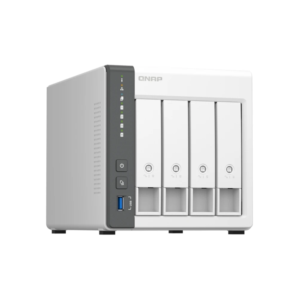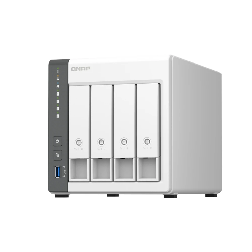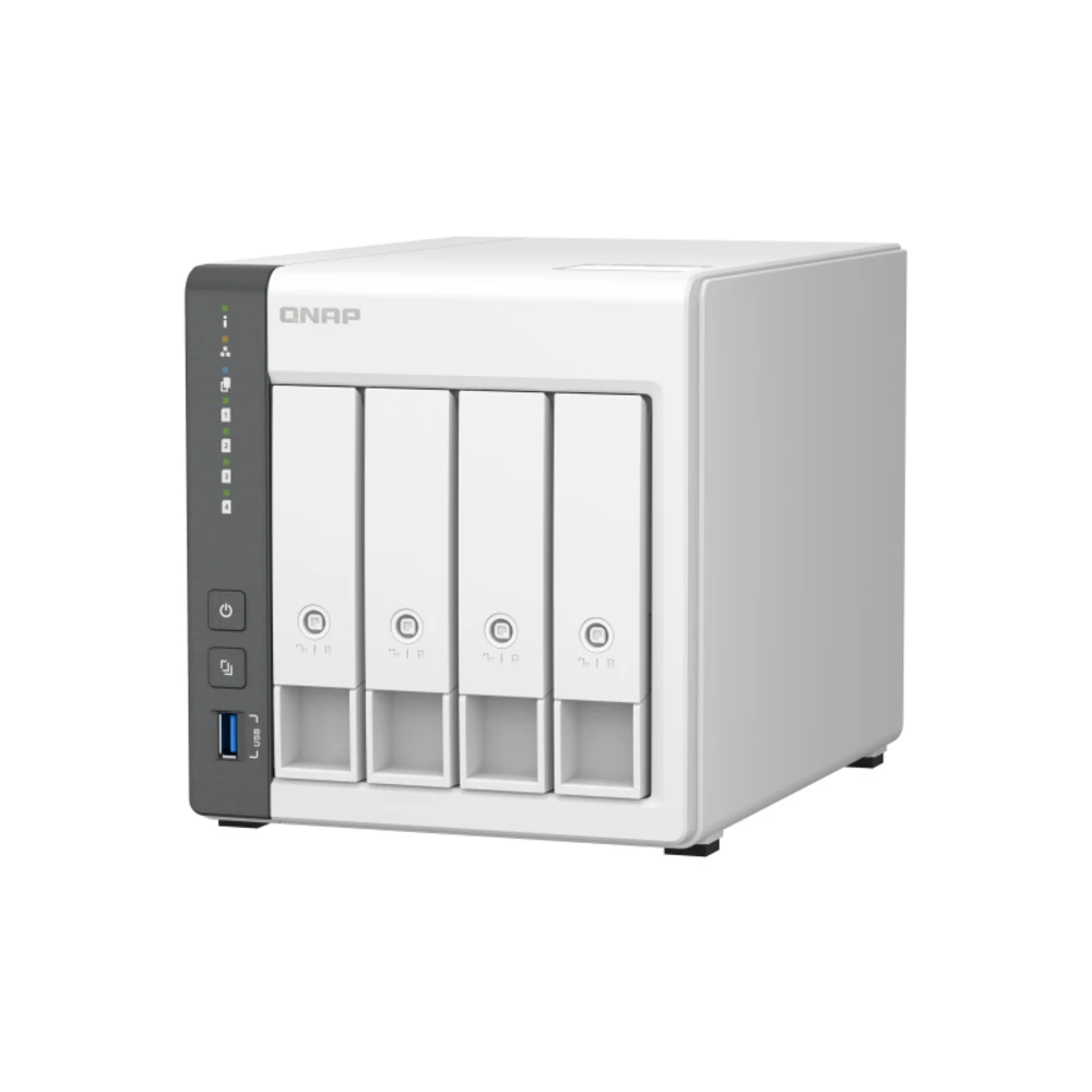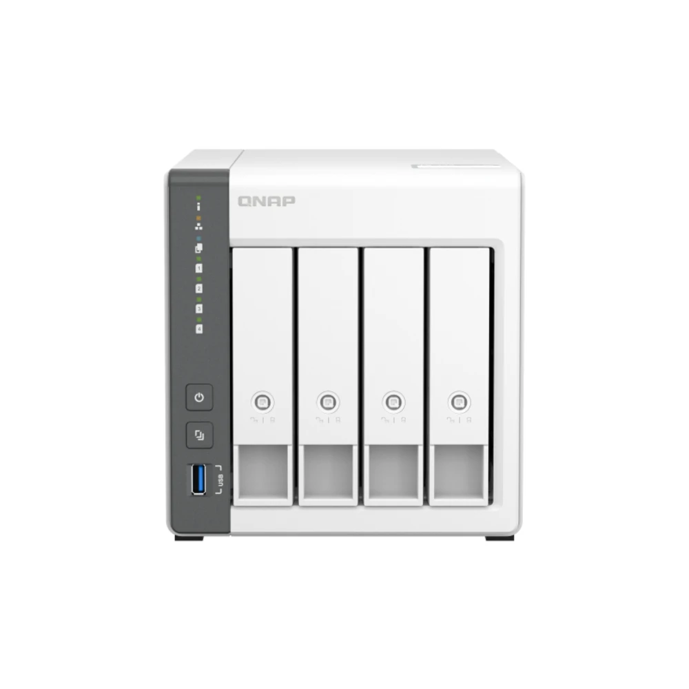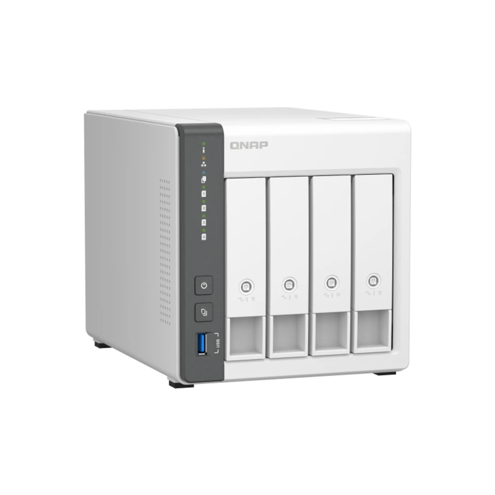 QNAP TS-433. Supported storage drive types: HDD & SSD, Supported storage drive interfaces: Serial ATA, Storage drive sizes supported: 2.5,3.5". Processor family: ARM, Processor model: Cortex-A55, Processor frequency: 2 GHz. Internal memory: 4 GB, Maximum RAM supported: 4 GB, Flash memory: 4000 MB. Ethernet LAN data rates: 100,1000,2500 Mbit/s. Chassis type: Tower, Cooling type: Active, Number of fans: 1 fan(s)