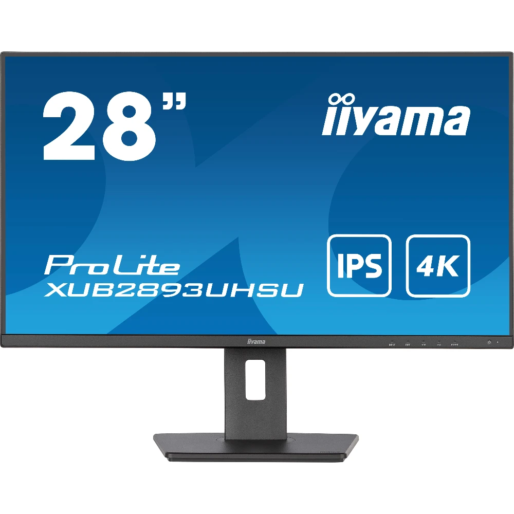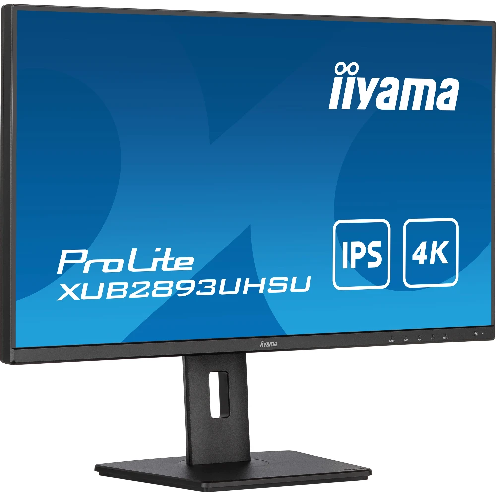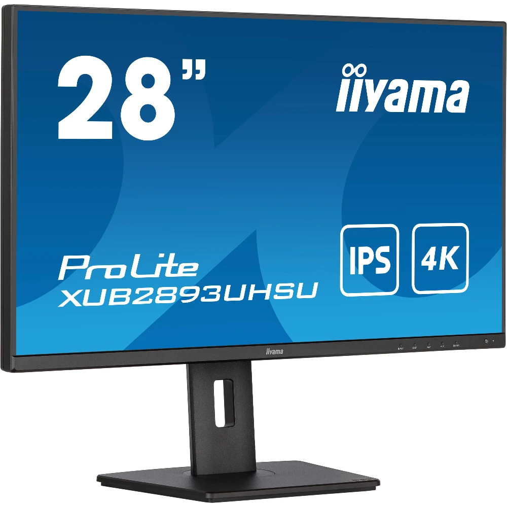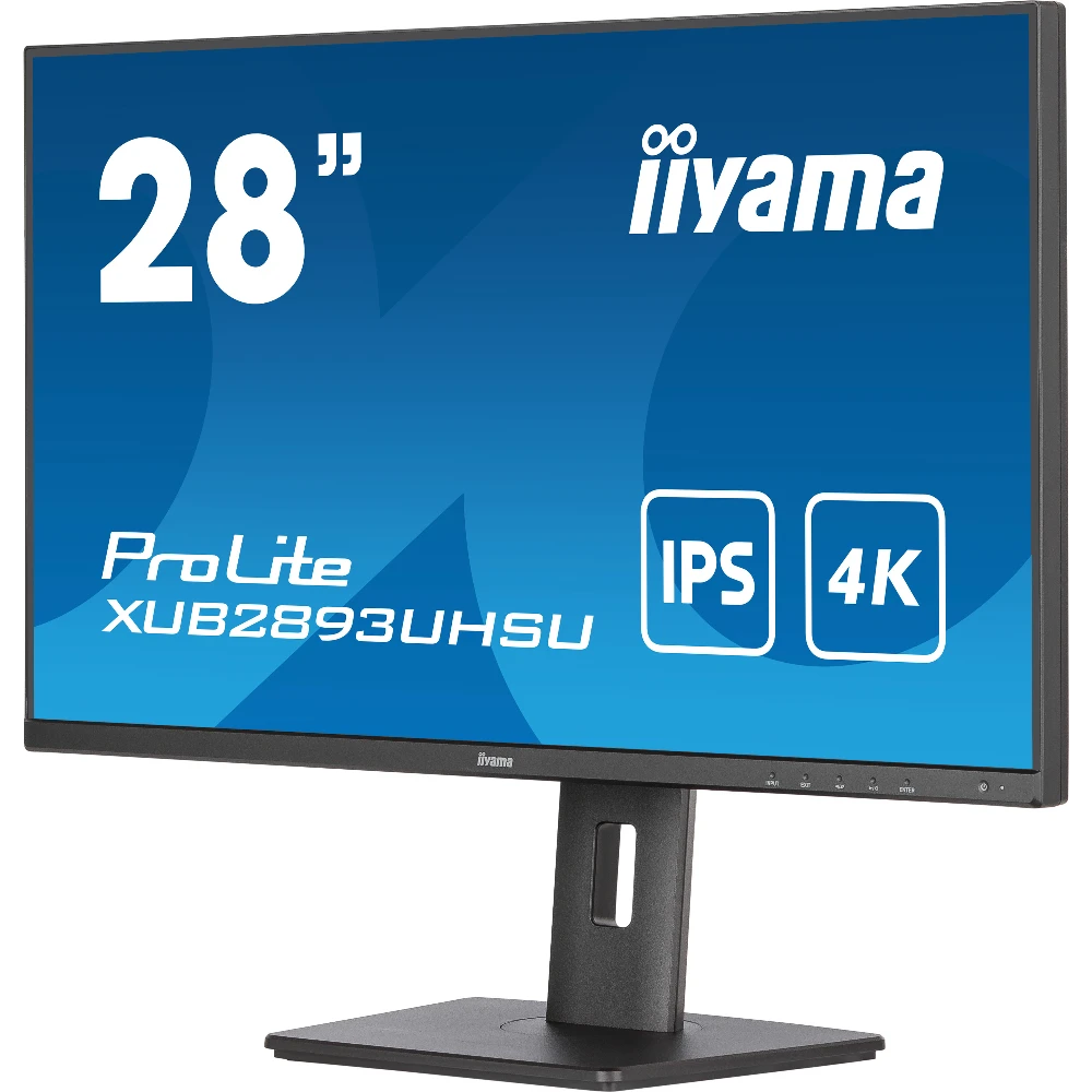 iiyama ProLite XUB2893UHSU-B5 (EOL). Display diagonal: 71.1 cm (28"), Display resolution: 3840 x 2160 pixels, HD type: 4K Ultra HD, Display technology: LED, Display surface: Matt, Response time: 3 ms, Native aspect ratio: 16:9, Viewing angle, horizontal: 178°, Viewing angle, vertical: 178°. Built-in speaker(s). Built-in USB hub. VESA mounting, Height adjustment. Product colour: Black