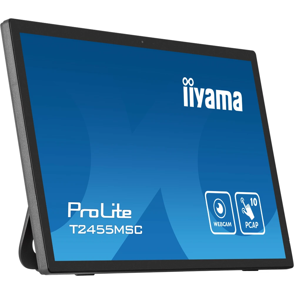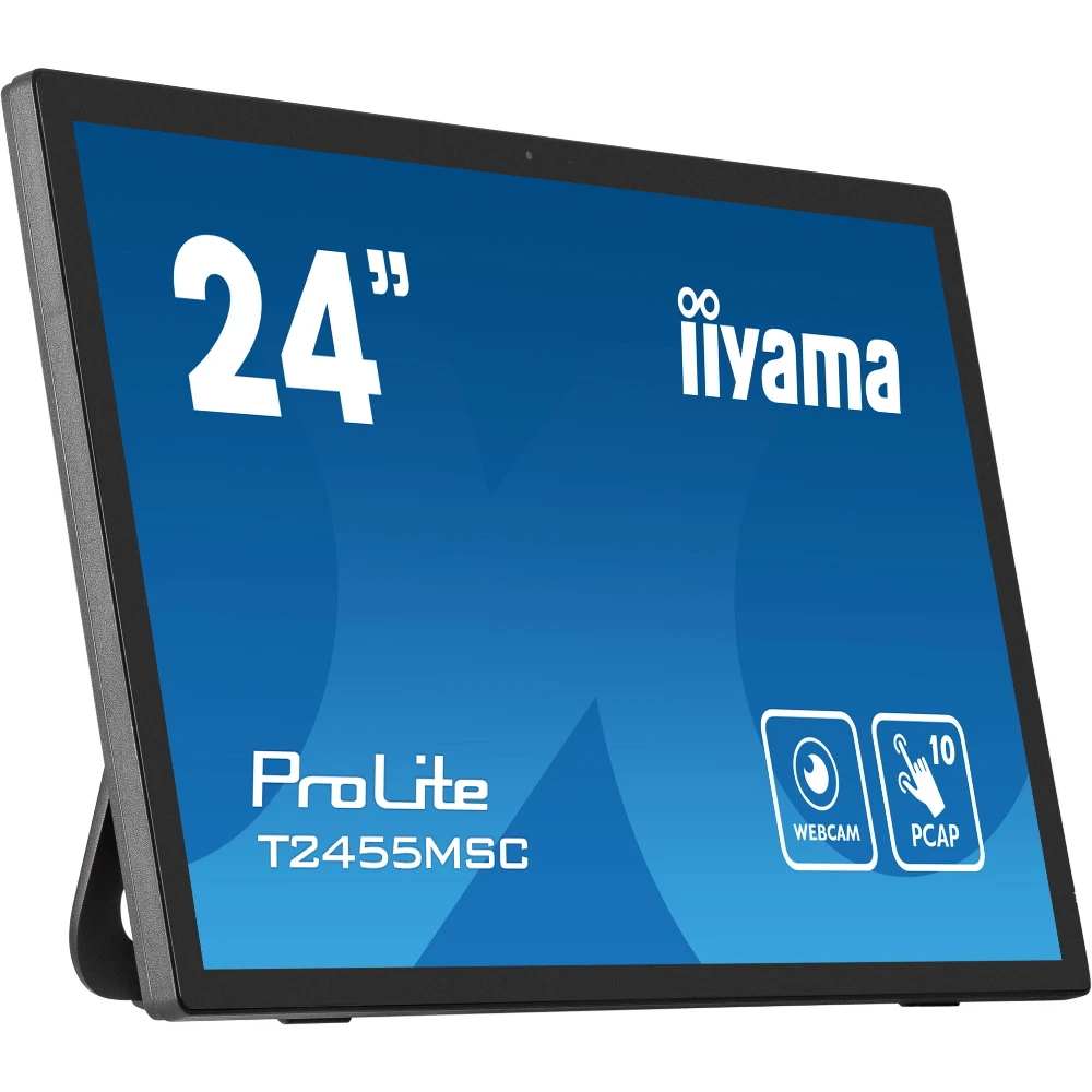 The ProLite T2455MSC with its Full HD (1920x1080) resolution and accurate PCAP 10 point touch technology, delivers a seamless and accurate touch response. Featuring IPS LCD screen technology, it offers exceptional colour performance and wide viewing angels. A special Nano coating ensures a smoother touch and less resistance in the swipe. It makes the screen less static and susceptible to dirt, dust and fingerprints. The built-in webcam and microphone make the T2455MSC also a complete solution for online communication. Its flexible stand can be positioned at several angles creating a comfortable and ergonomic user experience. A perfect choise for a vast array of applications.