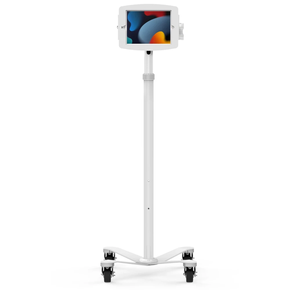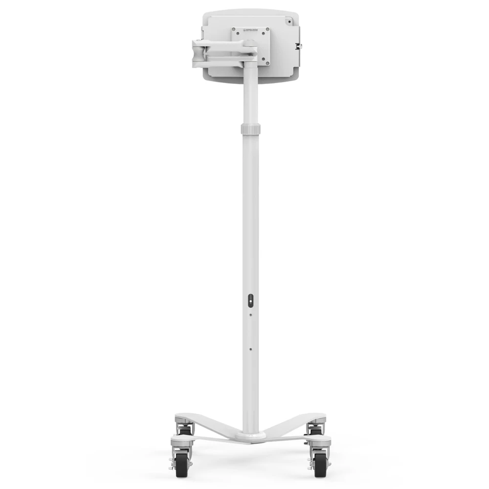iPad Mini 8.3" (6th-7th gen), "Space" Enclosure & Medical Rolling Cart Extended for VESA Mounts, White