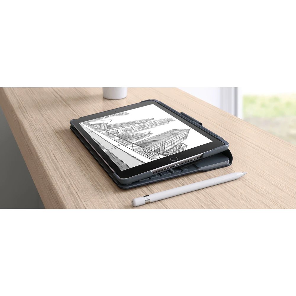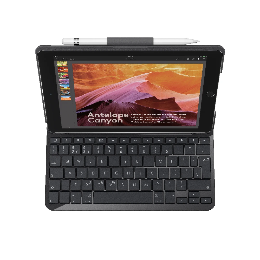 Logitech SLIM FOLIO with Integrated Bluetooth Keyboard for iPad (5th and 6th generation). Keyboard layout: QWERTY, Keyboard language: Italian. Brand compatibility: Apple, Compatibility: iPad 5th, Product colour: Carbon, Black. Connectivity technology: Wireless, Device interface: Bluetooth. Power source: Dock, Battery technology: Lithium-Ion (Li-Ion), Battery capacity: 220 mAh. Width: 248 mm, Depth: 20 mm, Height: 182 mm