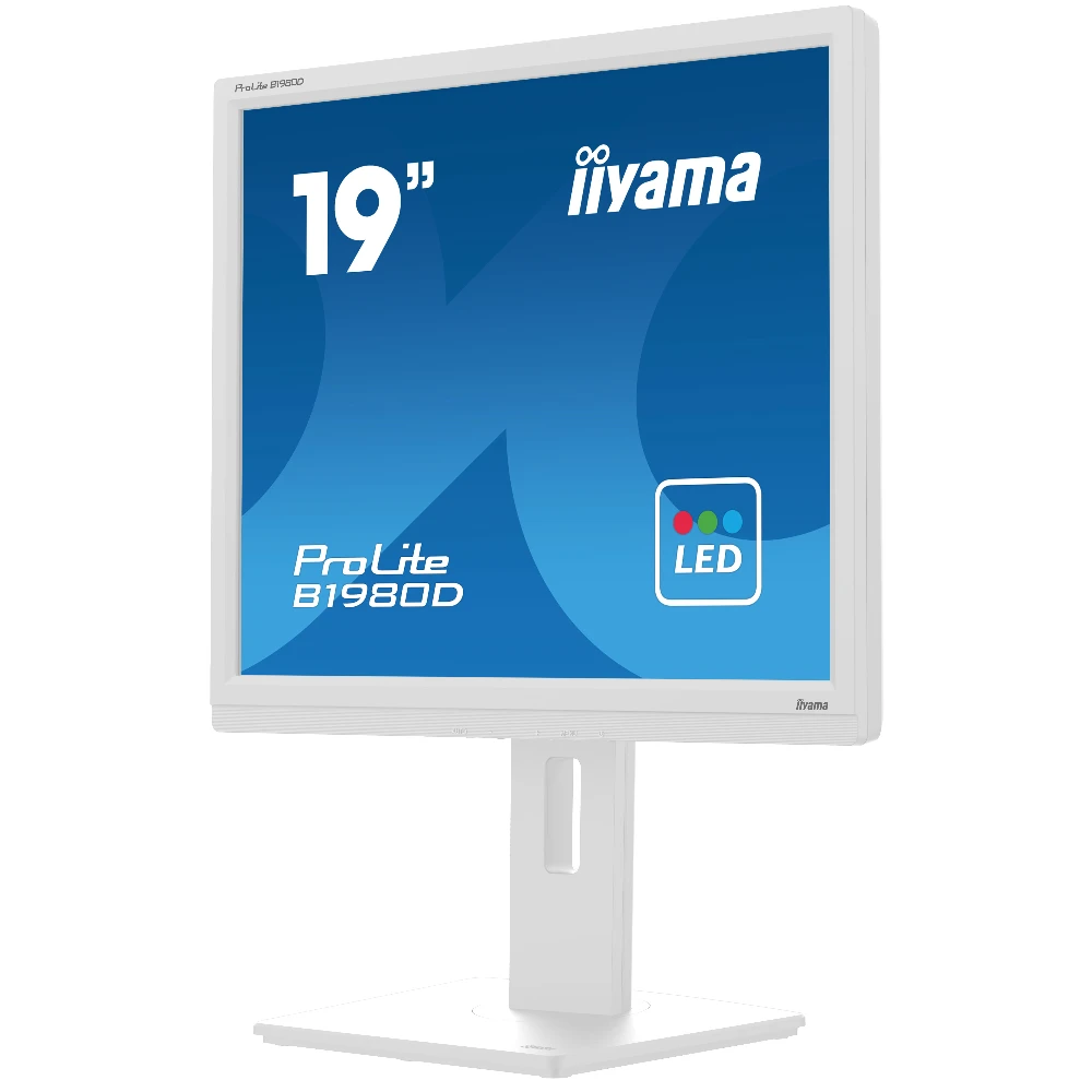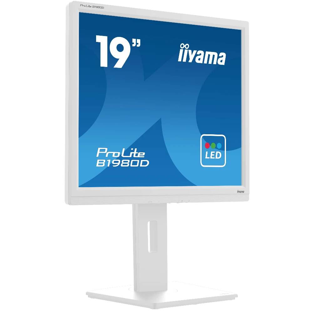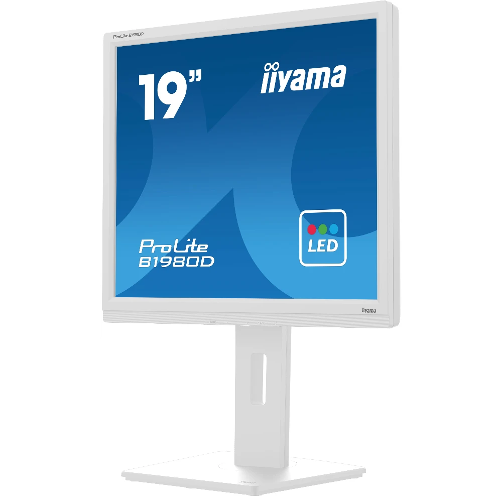 iiyama ProLite B1980D-W5. Display diagonal: 48.3 cm (19"), Display resolution: 1280 x 1024 pixels, HD type: SXGA, Display technology: LCD, Response time: 5 ms, Native aspect ratio: 5:4, Viewing angle, horizontal: 170?, Viewing angle, vertical: 160?. VESA mounting, Height adjustment. Product colour: White