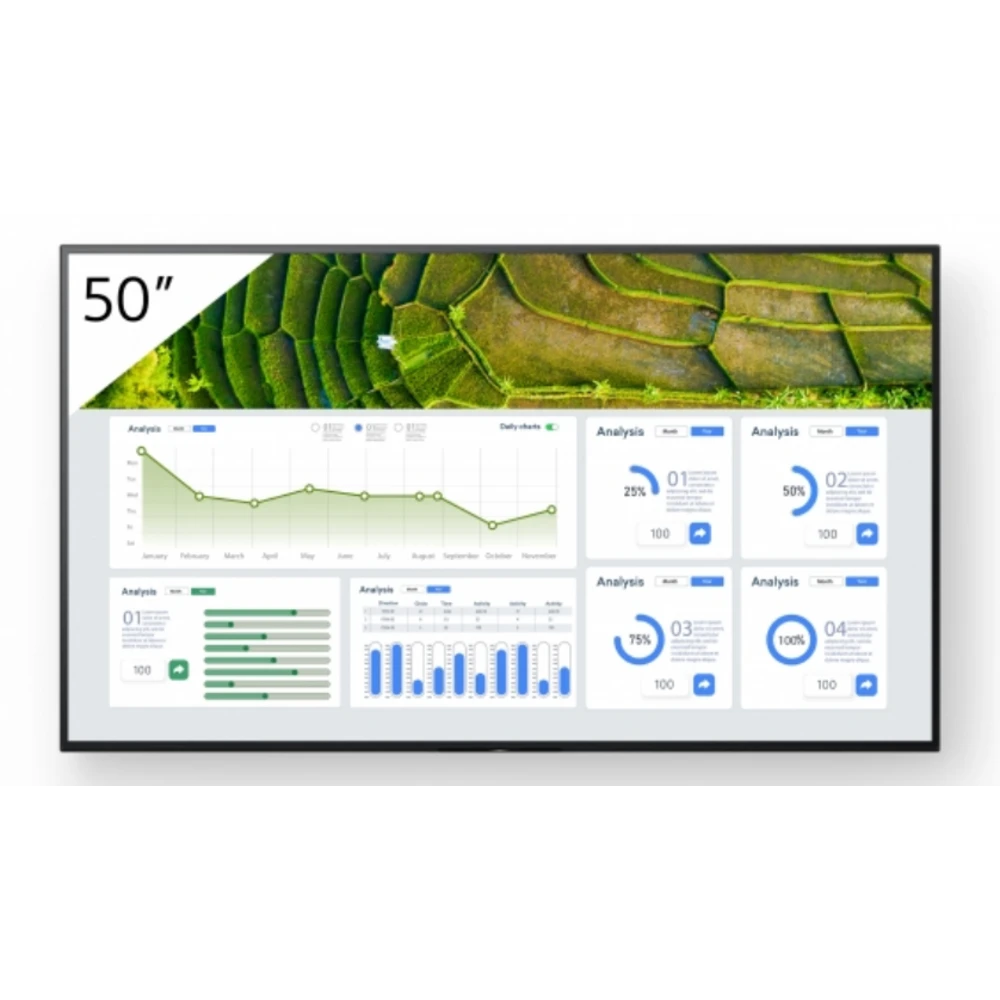 Sony FW-50BZ30L/TM. Product design: Digital signage flat panel. Display diagonal: 127 cm (50"), Display technology: LCD, Display resolution: 3840 x 2160 pixels, Display brightness: 440 cd/m?, HD type: 4K Ultra HD. Wi-Fi. Operating hours (hours/days): 24/7. Operating system installed: Android. Product colour: Black