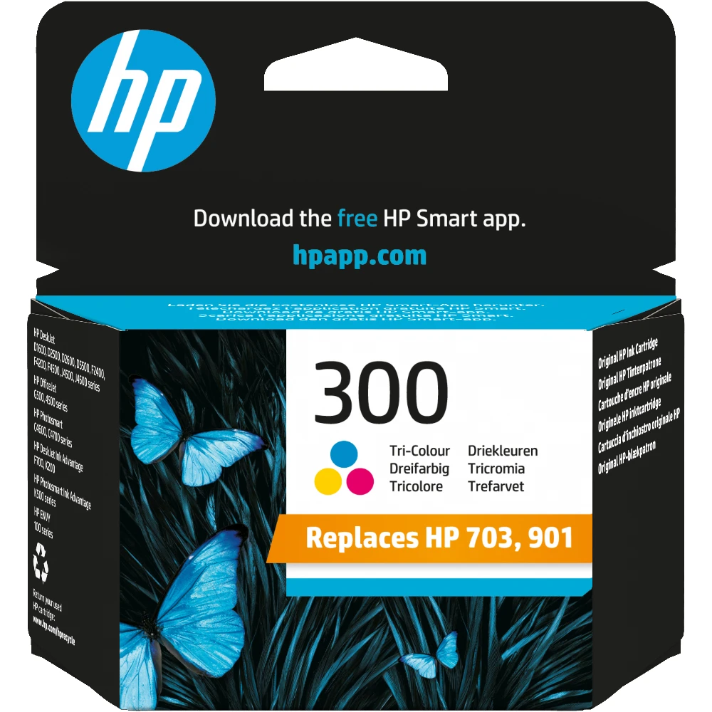 HP 300 Tri-color Original Ink Cartridge. Colour ink type: Dye-based ink, Cartridge capacity: Standard Yield, Colour ink page yield: 165 pages, Printing colours: Cyan, Magenta, Yellow, Quantity per pack: 1 pc(s)