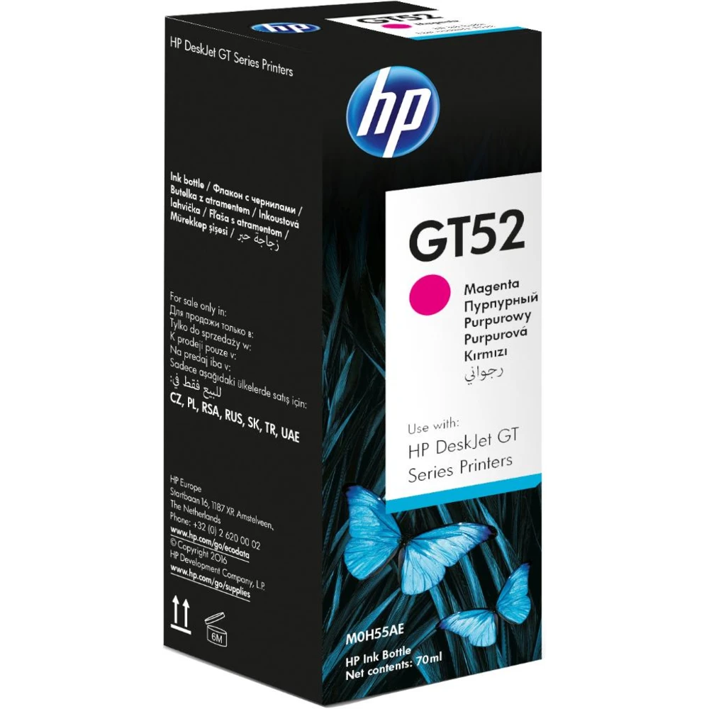 HP GT52. Printing colours: Magenta, Brand compatibility: HP, Product colour: Magenta. Quantity per pack: 1 pc(s). Master (outer) case gross weight: 2.89 g, Products per pallet: 2016 pc(s), Pallet gross weight: 277.6 g