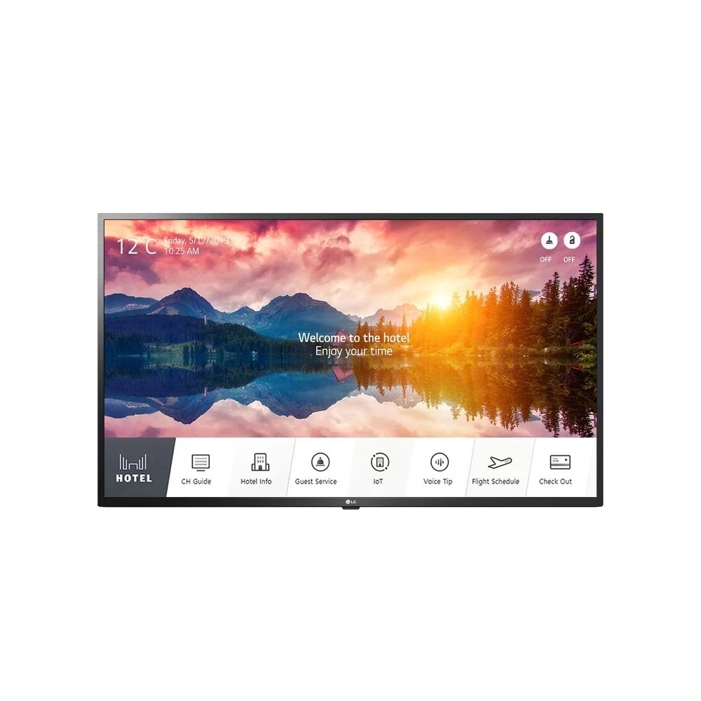 LG 43'' UHD Hotel TV. Display diagonal: 109.2 cm (43"), HD type: 4K Ultra HD, Display resolution: 3840 x 2160 pixels. Product colour: Black, Panel mounting interface: 200 x 200 mm, Cable lock slot type: Kensington. Tuner type: Analog & digital, High Dynamic Range (HDR) technology: High Dynamic Range 10 Pro (HDR10 Pro), Hybrid Log-Gamma (HLG), Analog signal format system: PAL. Content management solution: LG Pro:Centric. RMS rated power: 20 W