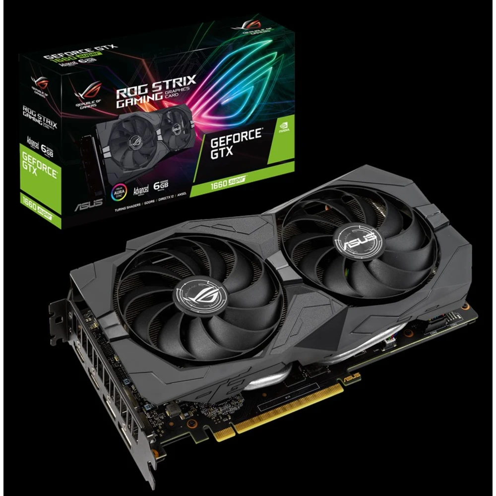 ASUS ROG GTX1660S-A6G-GAMING. Graphics processor family: NVIDIA, Graphics processor: GeForce GTX 1660 SUPER, Processor frequency: 1530 MHz. Discrete graphics card memory: 6 GB, Graphics card memory type: GDDR6, Memory bus: 192 bit, Memory clock speed: 14002 MHz. Maximum resolution: 7680 x 4320 pixels. DirectX version: 12.0, OpenGL version: 4.6. Interface type: PCI Express x16 3.0. Cooling type: Active, Number of fans: 2 fan(s)