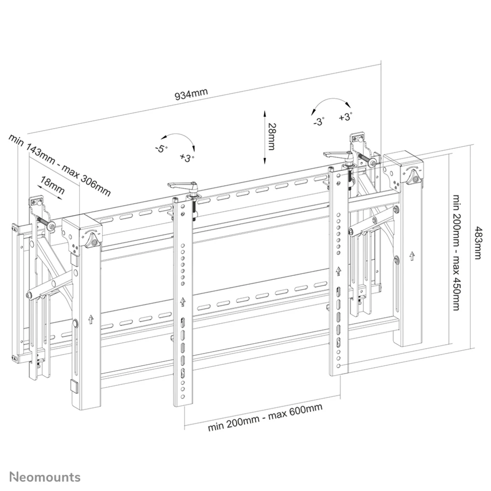Neomounts by Newstar Video Wall Monitor Wall Mount for 32"-75" Screen - Black Neomounts by Newstar video wall mount. Maximum weight capacity: 70 kg, Minimum screen size: 81.3 cm (32"), Maximum screen size: 190.5 cm (75"), Minimum VESA mount: 200 x 200 mm, Maximum VESA mount: 600 x 400 mm. Tilt angle range: 0 - 12?. Product colour: Black The Neomounts by Newstar wall mount, model LED-VW2000BLACK is a fixed wall mount for flat screens up to 75" (191 cm). This mount is a great choice when you want the ultimate viewing flexibility with your flat screen. Depth of this mount is 14 to 30 centimetres. This wall mount is specially made to be used in video walls. The screen easily can be pulled out.