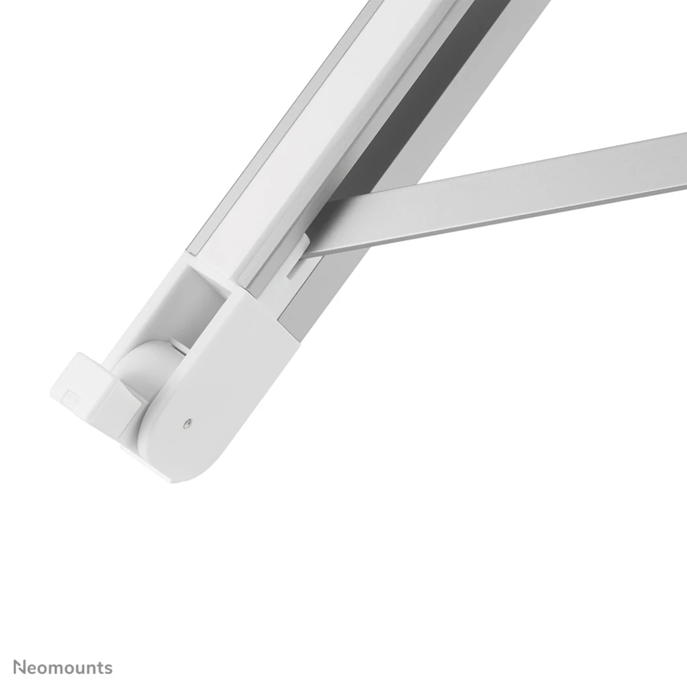 Neomounts by Newstar foldable laptop stand. Product type: Notebook stand, Product colour: Silver, Minimum notebook screen size compatibility: 27.9 cm (11"). Height adjustment range: 140 - 180 mm, Width adjustment range: 160 - 195 mm. Width: 289 mm, Depth: 320 mm, Height: 270 mm. Products per master (outer) case: 50 pc(s), Products per pallet (EU): 1250 pc(s). Package net weight: 300 g