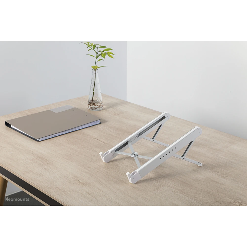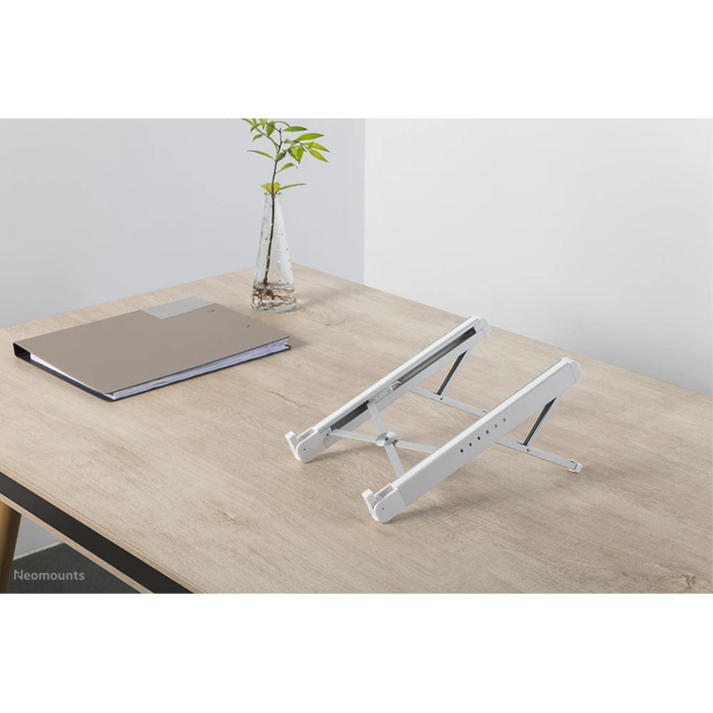 The Neomounts by Newstar NSLS010 is a universal stand for laptops from 11" up to 17", with a maximum weight capacity of 5 kg. The stand has six different height positions and a ultra-slim folding design.