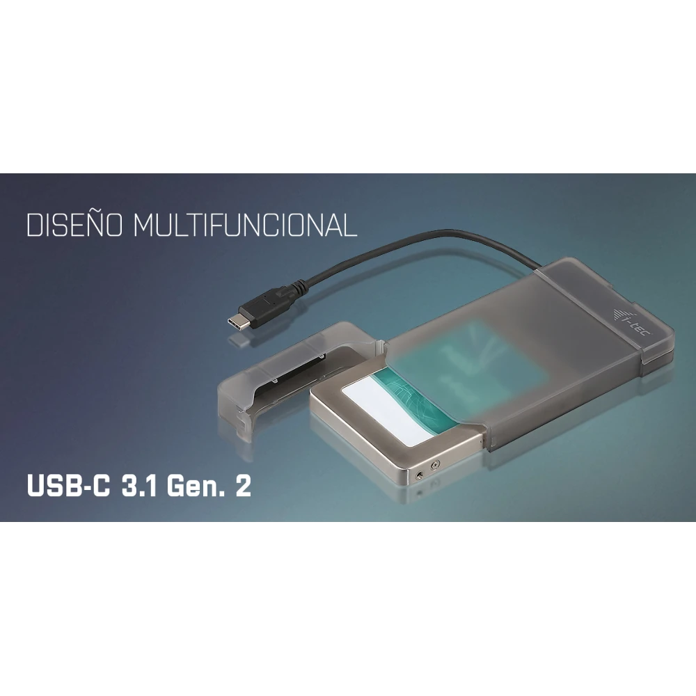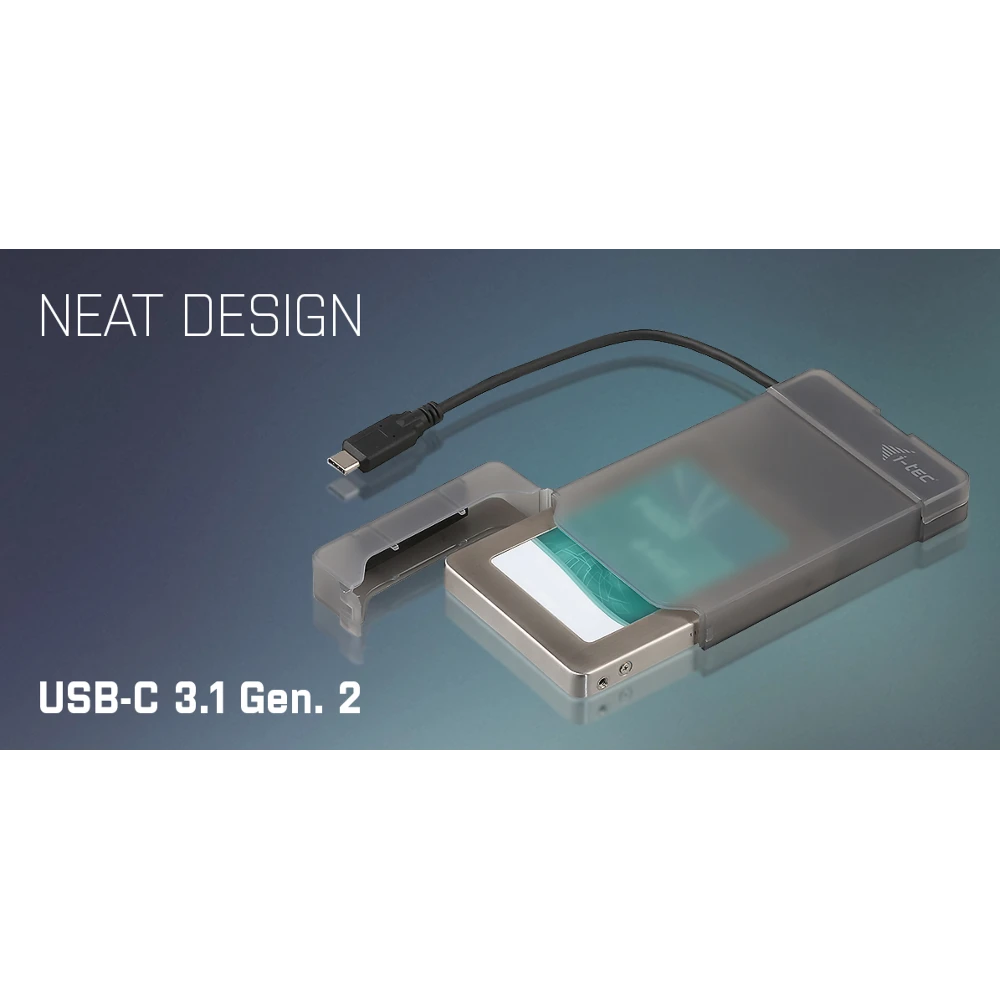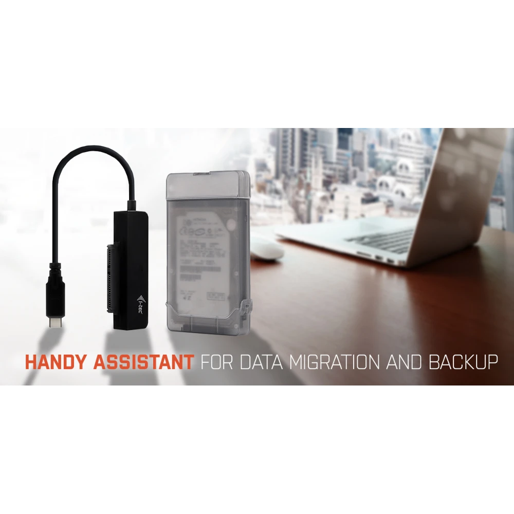 i-tec MySafe USB-C Easy, external case for connecting 2.5" SATA disks to your PC, laptop, TV or other multimedia device through USB-C interface, with power supply. You can use the external case for data migration, backup or data recovery. USB-C 3.1 Gen. 2 interface with speeds up to 10 Gbps, data transfer is therefore up to 2x faster than the previous version. Interface is compatible with Thunderbolt 3.