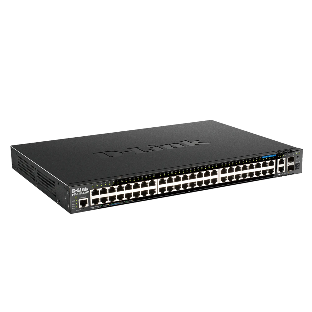 D-Link DGS-1520-52MP. Switch type: Managed, Switch layer: L3. Basic switching RJ-45 Ethernet ports type: Gigabit Ethernet (10/100/1000), Basic switching RJ-45 Ethernet ports quantity: 44. MAC address table: 16384 entries, Switching capacity: 188 Gbit/s. Power over Ethernet (PoE). Rack mounting, Form factor: 1U