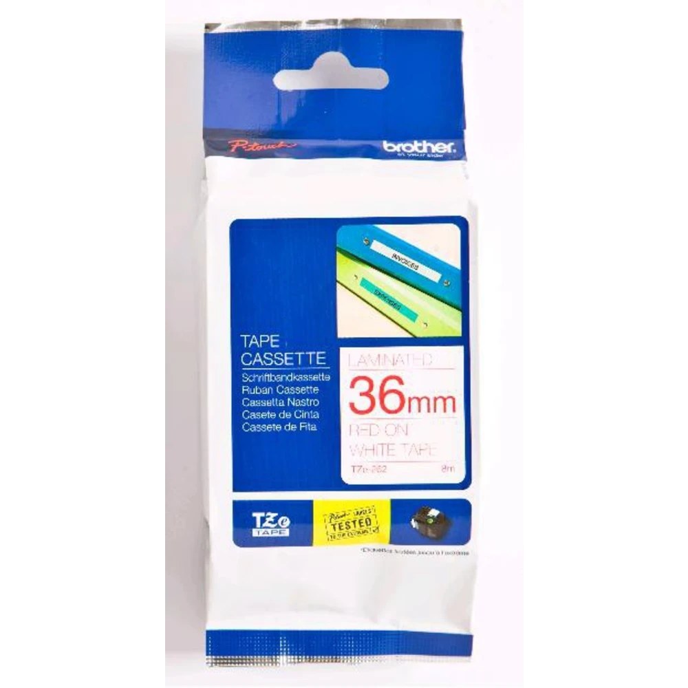 TZe-262 - 36 mm red on white tape, 8m Brother TZe-262. Tape length: 8 m, Quantity per pack: 1 pc(s). Tape size: 3.6 cm