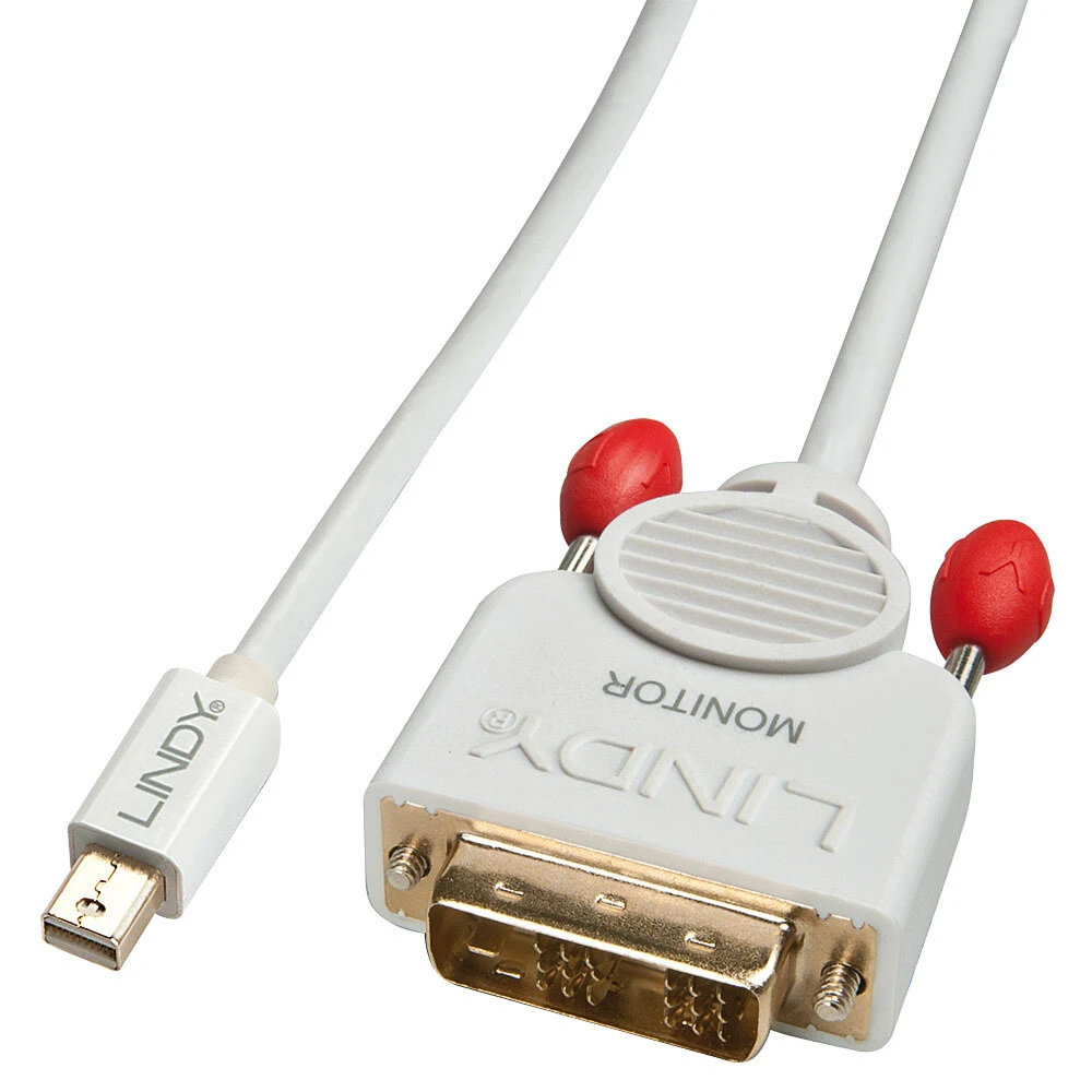 3m Mini DisplayPort to DVI Cable, White Lindy Mini DisplayPort to DVI-D Cable 3m, white. Connector 1: Mini DisplayPort, Connector 2: DVI-D, Connector 1 gender: Male Connects a Mini DisplayPort equipped device to a DVI display