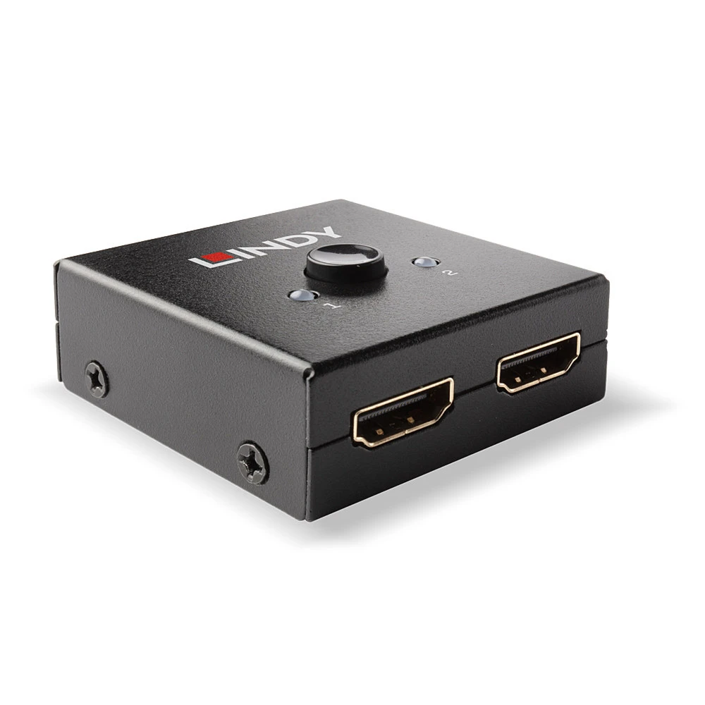 Lindy 2 Port HDMI 18G Bi-Directional Switch. Video port type: HDMI. Material: Metal, Product colour: Black, Maximum refresh rate: 60 Hz. Certification: CE, FCC, REACH, California Proposition 65. Width: 49 mm, Depth: 52 mm, Height: 20 mm. Package width: 63.5 mm, Package depth: 80 mm, Package height: 28 mm