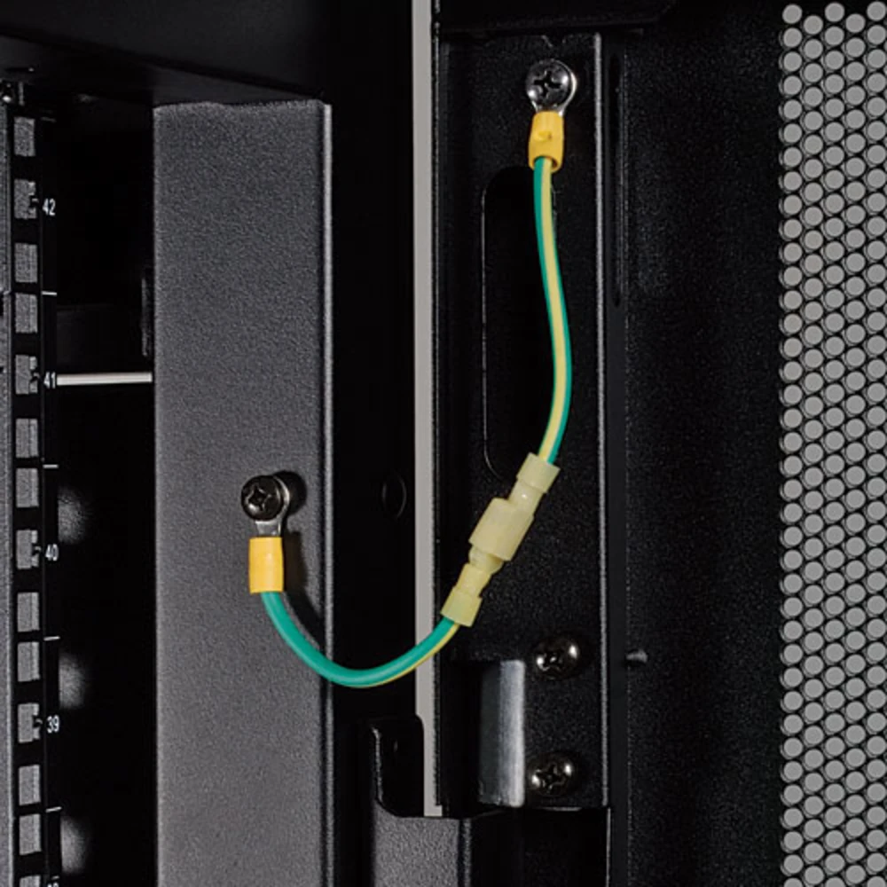 All components of the SR48UBWD are grounded to the enclosure frame. Front and rear threaded grounding points are provided for connection to the facility earth ground. The removable front and rear doors feature quick-release ground wires.