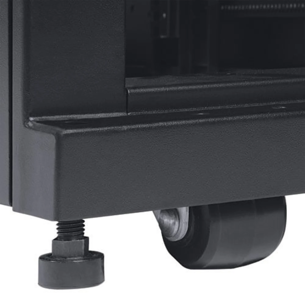 To simplify deployment, the SR48UBWD comes with preinstalled casters that enable it to be easily maneuvered into the desired location, where it can be secured by adjusting the preinstalled levelers. Note: The casters are intended for minor position adjustments and are not designed for moving the enclosure over long distances.
