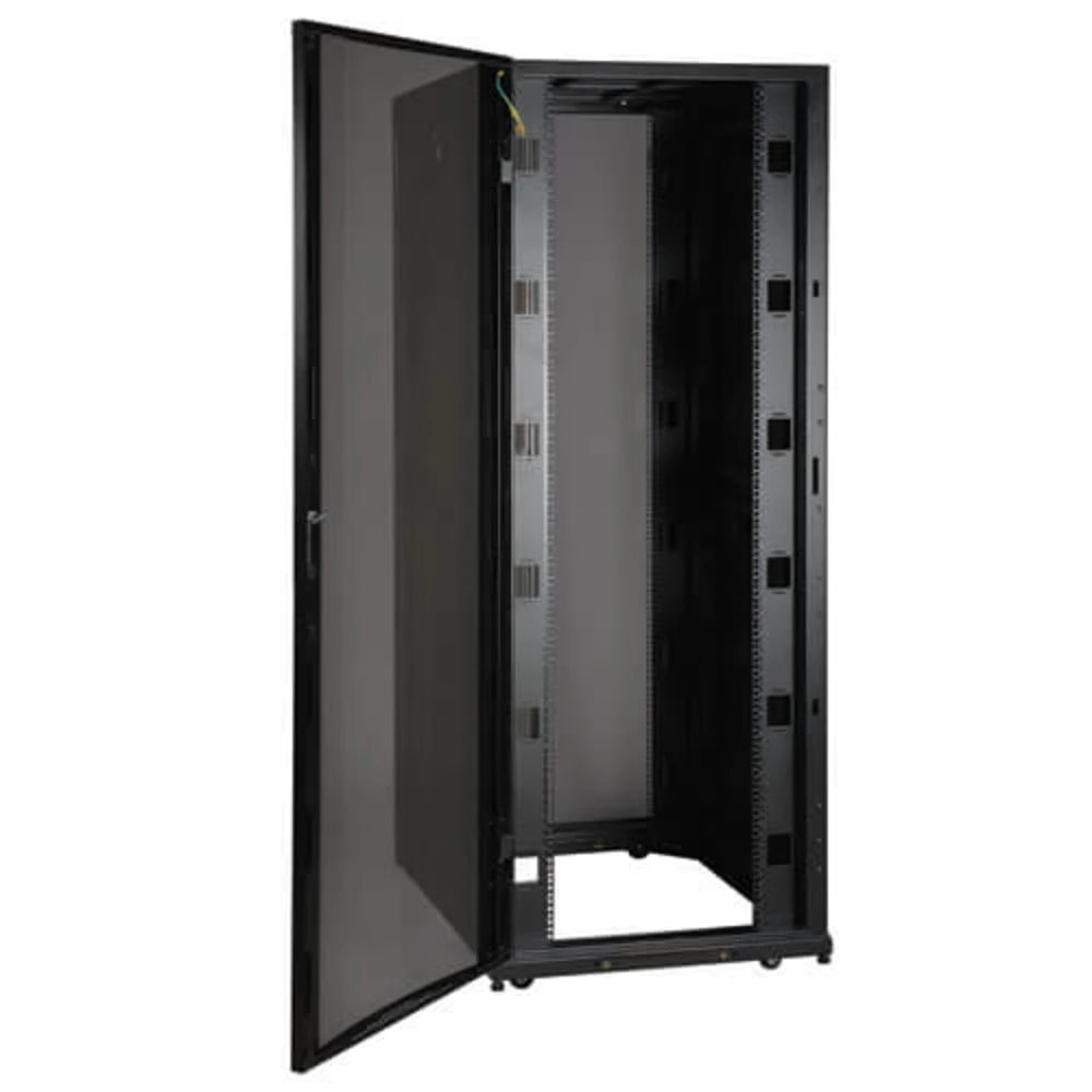 The SR48UBWD features a massive front-to-rear ventilation capacity that meets or exceeds server manufacturer requirements. Its integrated baying tabs make it easy to combine multiple enclosures in rows for data center applications. This enclosure is also compatible with hot-aisle/cold-aisle configurations.