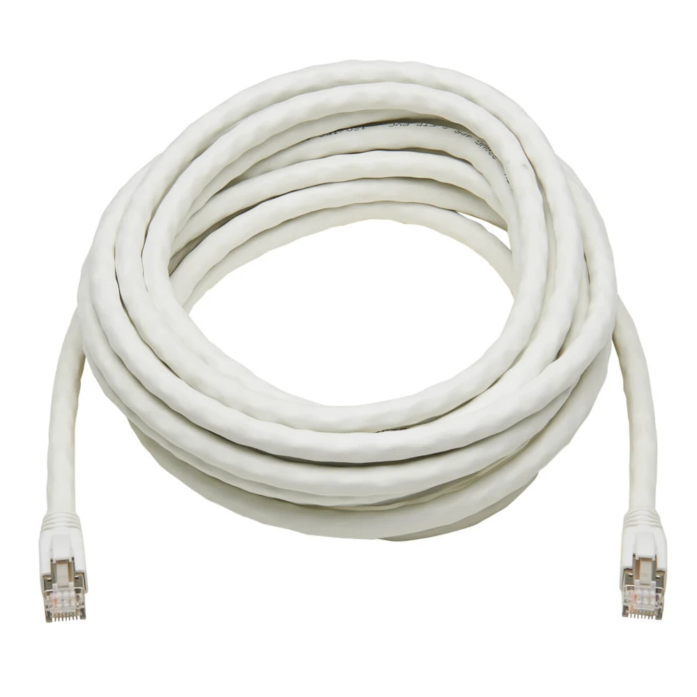 Tripp Lite N272-020-WH Cat8 25G/40G Certified Snagless Shielded S/FTP Ethernet Cable (RJ45 M/M), PoE, White, 20 ft. (6.09 m). Cable length: 6.09 m, Cable standard: Cat8, Cable shielding: S/FTP (S-STP), Connector 1: RJ-45, Connector 2: RJ-45, Connector contacts plating: Gold, Data transfer rate: 40000 Mbit/s