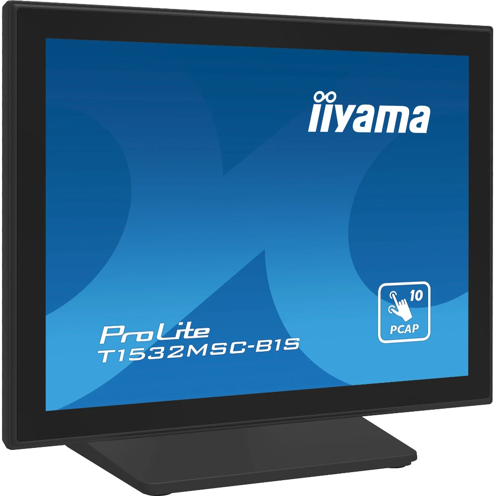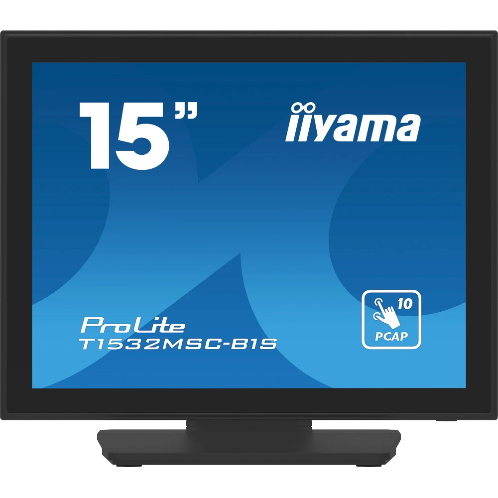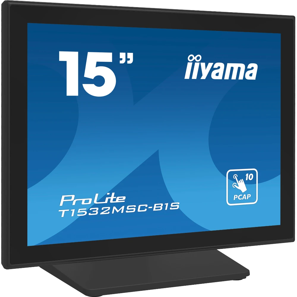 15", 1024 x 768, projective capacitive, TN, VGA/HDMI/DisplayPort, 351 x 306.5 x 200 mm iiyama ProLite T1532MSC-B1S. Display diagonal: 38.1 cm (15"), Display resolution: 1024 x 768 pixels, HD type: XGA, Display technology: LCD, Response time: 8 ms, Native aspect ratio: 4:3, Viewing angle, horizontal: 176?, Viewing angle, vertical: 176?. Built-in speaker(s). VESA mounting. Product colour: Black The ProLite T1532MSC-B1S 15" multi-touch screen is based on projected capacitive technology which thanks to a glass overlay covering the screen guarantees high durability, scratch-resistance and perfect picture performance. The touch function remains unaffected even if the glass is scratched. A solid and steady base supports the touchscreen with an adjustable stand offering full 90 degree positioning angles. Menu buttons are located on the side of the screen which can be locked to prevent tampering and includes a handy function to deactivate the touchscreen for cleaning. In addition the edge-to-edge glass design creates an eye-catching finish with high light transmission guaranteeing perfect picture clarity and brilliant colours.