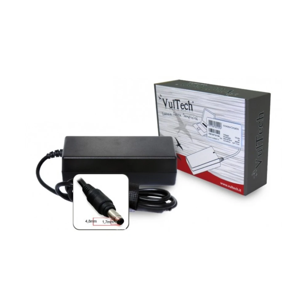 HP, 90W 19V 4.74A Vultech HP19474K-312. Purpose: Laptop, Power supply type: Indoor, Input voltage: 100-240 V. Connector(s): 4.4 x 1.7 mm. Product colour: Black. Quantity per pack: 1 pc(s), Package type: Box VulTech® - compatible Power Adapter for HP Notebook ensures the same reliability and trustworthiness as the original one.