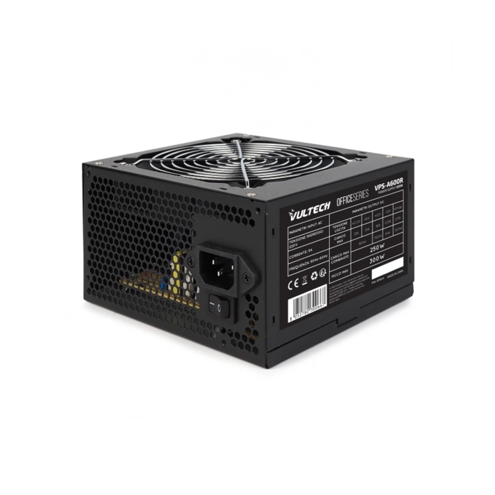 Vultech VPS-A600R. Total power: 250 W, Peak power: 300 W, Power protection features: Over current, Over power. Motherboard power connector: 20+4 pin ATX. Purpose: PC, Power supply unit (PSU) form factor: ATX. Product colour: Black, Cooling type: Active, Fan diameter: 12 cm. Cables included: AC