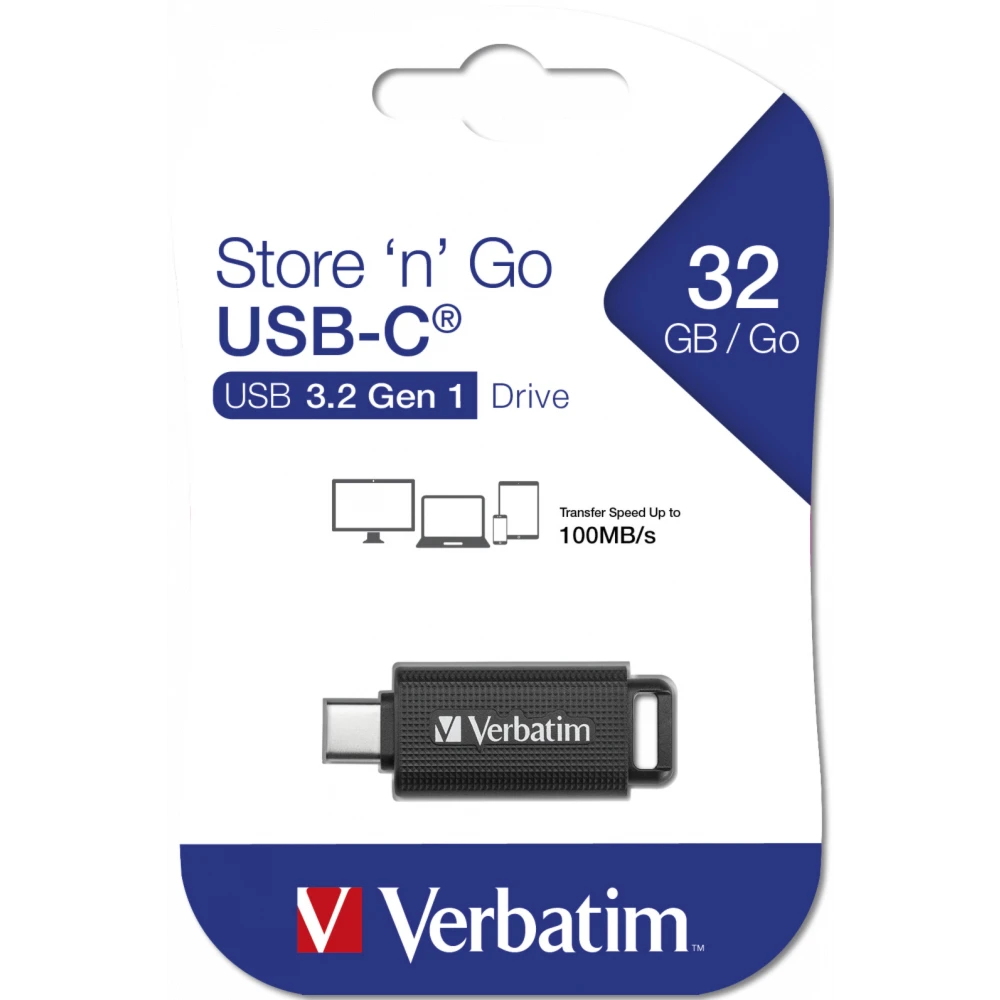 Verbatim Store 'n' Go. Capacity: 32 GB, Device interface: USB Type-C, USB version: 3.2 Gen 1 (3.1 Gen 1). Form factor: Slide. Weight: 4 g. Product colour: Black