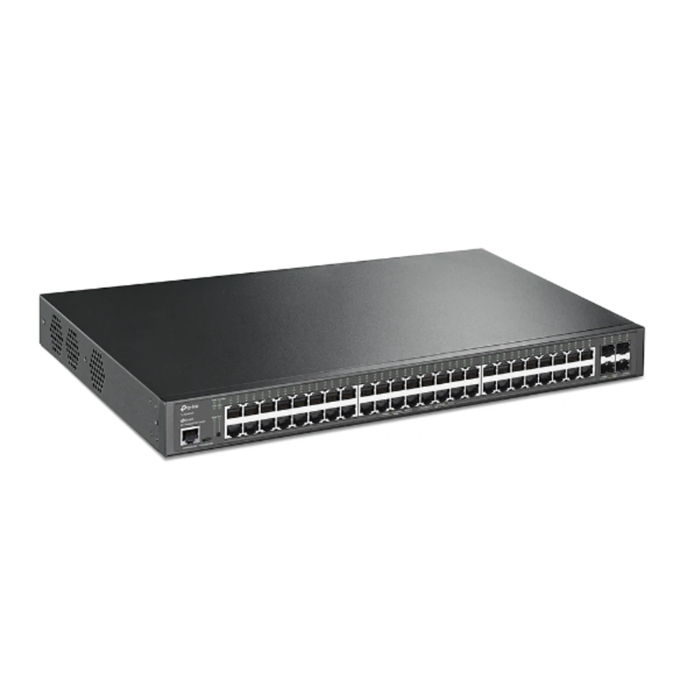 48x 10/100/1000 Mbps RJ45 PoE+, 4x 10G SFP+ Slots, 1x RJ45, 1x Micro-USB, 176 Gbps, MAC 16 K, 440 ? 330 ? 44 mm TP-Link JetStream 48-Port Gigabit and 4-Port 10GE SFP+ L2+ Managed Switch with 48-Port PoE+. Switch type: Managed, Switch layer: L2+. Basic switching RJ-45 Ethernet ports type: Gigabit Ethernet (10/100/1000), Basic switching RJ-45 Ethernet ports quantity: 48, Console port: RJ-45/Micro-USB. MAC address table: 16000 entries, Switching capacity: 176 Gbit/s. Networking standards: IEEE 802.1D, IEEE 802.1Q, IEEE 802.1s, IEEE 802.1w, IEEE 802.3ab, IEEE 802.3ae, IEEE 802.3af, IEEE.... Power over Ethernet (PoE). Rack mounting, Form factor: 1U 10G Uplink Managed Switch with