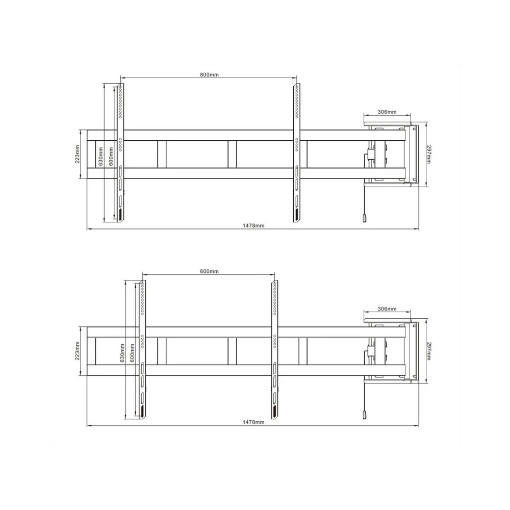 - M Universal Swing Arm at VESA 600x400 is 2360mm