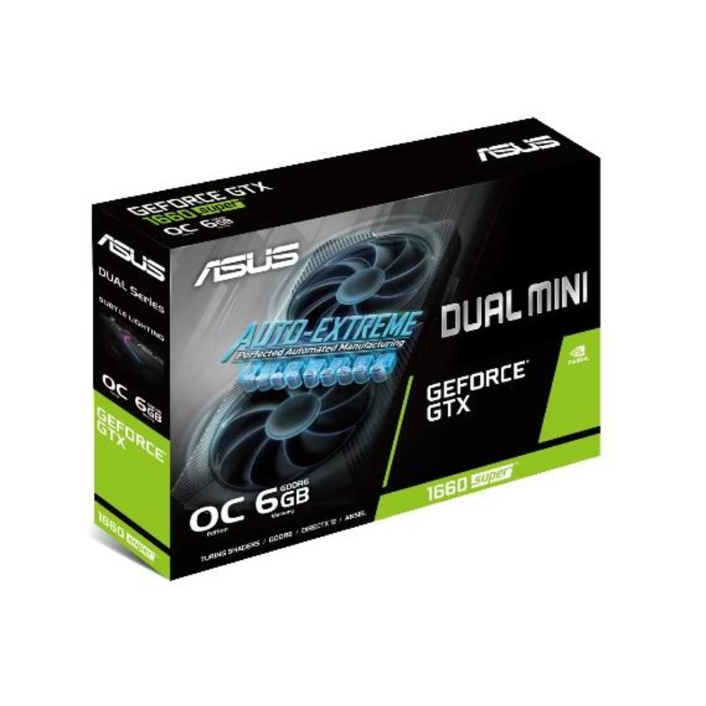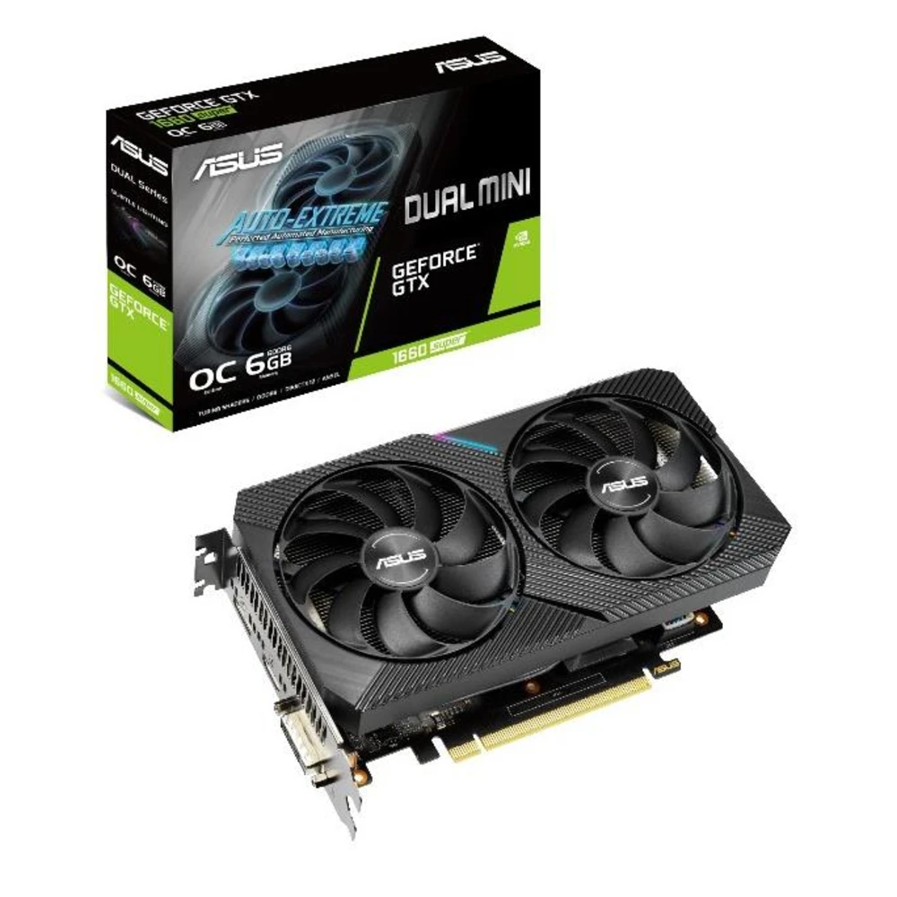 The ASUS Dual GeForce? GTX 1660 SUPER? MINI OC edition 6GB GDDR6 with a compact size and two powerful Axial-tech fans for Intel? NUC 9 Extreme Kit, Intel? NUC 9 Pro Kit, and other small chassis.