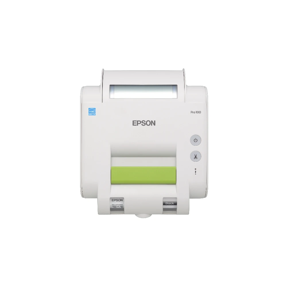 Epson LabelWorks Pro100. Print technology: Direct thermal / Thermal transfer, Maximum resolution: 300 x 300 DPI, Print speed: 20 mm/sec. Connectivity technology: Wired. Product colour: Green, Grey