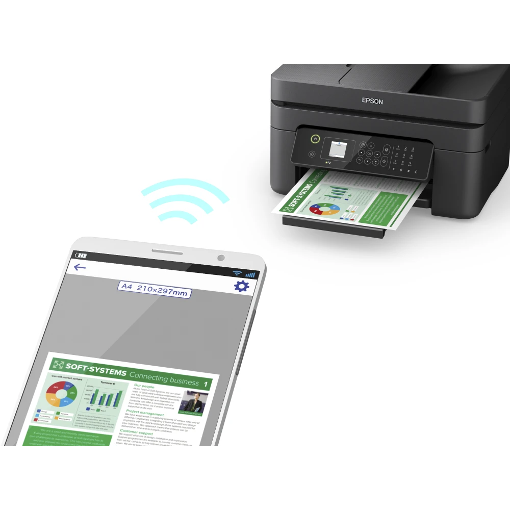 WF-2830DWF, 4-colour inkjet printer, 180 Nozzles Black, 59 Nozzles per Color, 10/5 p/min, 5760x1440 DPI, ADF, 33.6 kbps, A4, USB 2.0, WLAN, 375x300x218 mm