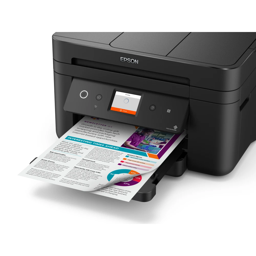 There’s no need to waste space; the 4-in-1 WF-2860DWF features a compact design. With its sleek and refined form, it’s easy to integrate this space-saving model into any home or small office setting.