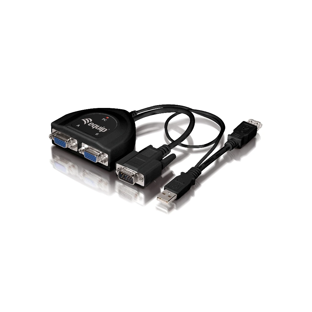 The equip® 2-Port VGA Cable Splitter distributes one VGA source to two displays; moreover, the cascadability makes it possible to connect to 16 screens. Powered from USB port, and this cable splitter offers an additional USB port for low power consumption such keyboard and mouse. Plug-and-play, no driver installation needed.