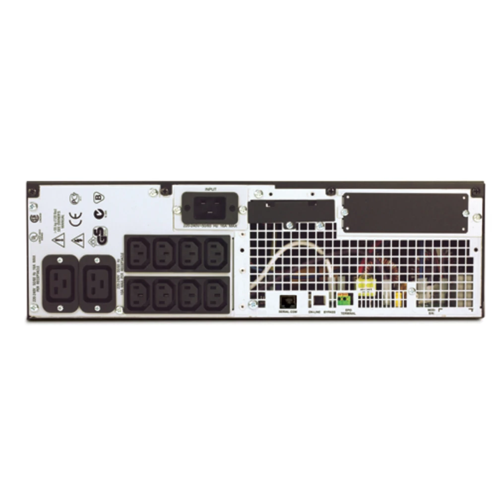 APC Smart-UPS RT 2200VA 230V - Marine. Output power capacity: 2.2 kVA, Output power: 1540 W, Input operation voltage (min): 100 V. AC outlet types: C13 coupler, C19 coupler, AC outlets quantity: 10 AC outlet(s). Battery technology: Sealed Lead Acid (VRLA), Battery recharge time: 2.5 h. Form factor: Rackmount, Product colour: Black, Rack capacity: 3U. Width: 130 mm, Depth: 660 mm, Height: 432 mm