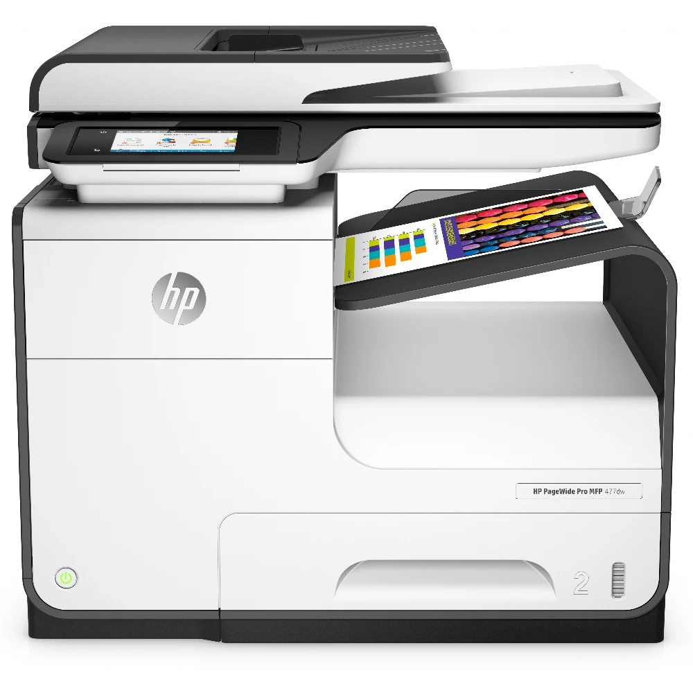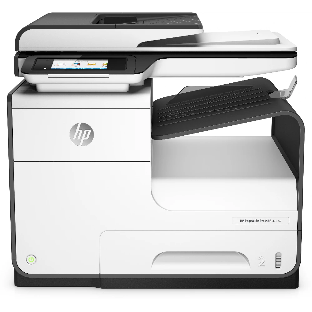 PageWide Pro 477dw Multifunction Printer HP PageWide Pro 477dw Multifunction Printer. Print technology: Thermal inkjet, Printing: Colour printing, Maximum resolution: 2400 x 1200 DPI, Print speed (colour, normal quality, A4/US Letter): 40 ppm. Copying: Colour copying, Maximum copy resolution: 600 x 600 DPI. Scanning: Colour scanning, Optical scanning resolution: 1200 x 1200 DPI. Faxing: Colour faxing. Duplex functions: Print, Scan, Fax. Maximum ISO A-series paper size: A4. Wi-Fi. Direct printing. Product colour: Grey HP PageWide Pro is faster[1] than any colour MFP in its class, for an exceptional value.[2] Ultimate value and speed – HP PageWide Pro delivers the lowest total cost of ownership and fastest speeds in its class.[1,2] Get quick two-sided scanning, plus best-in-class security features and energy efficiency.[3,4]