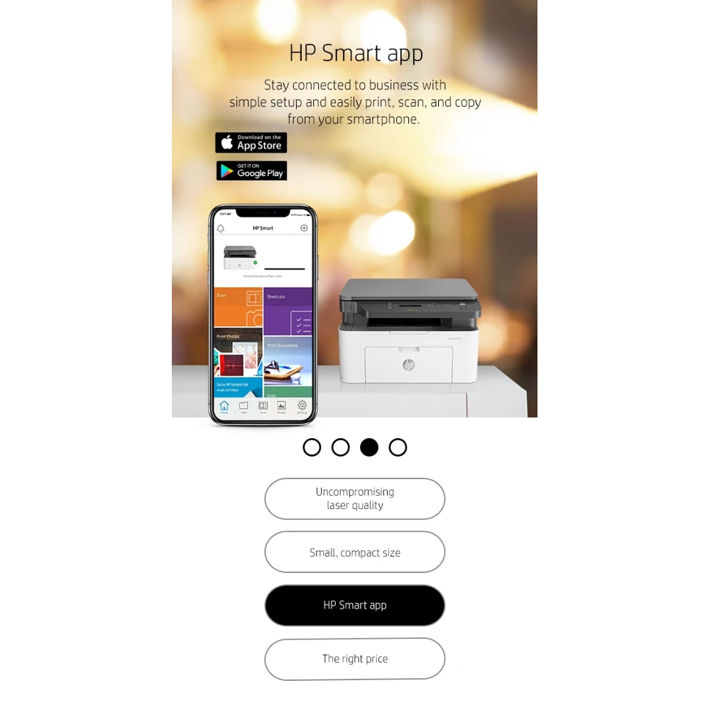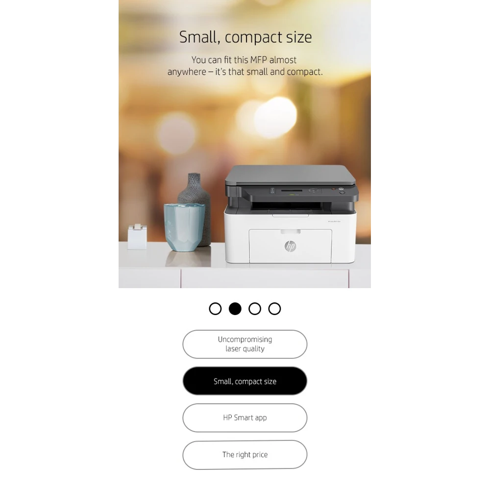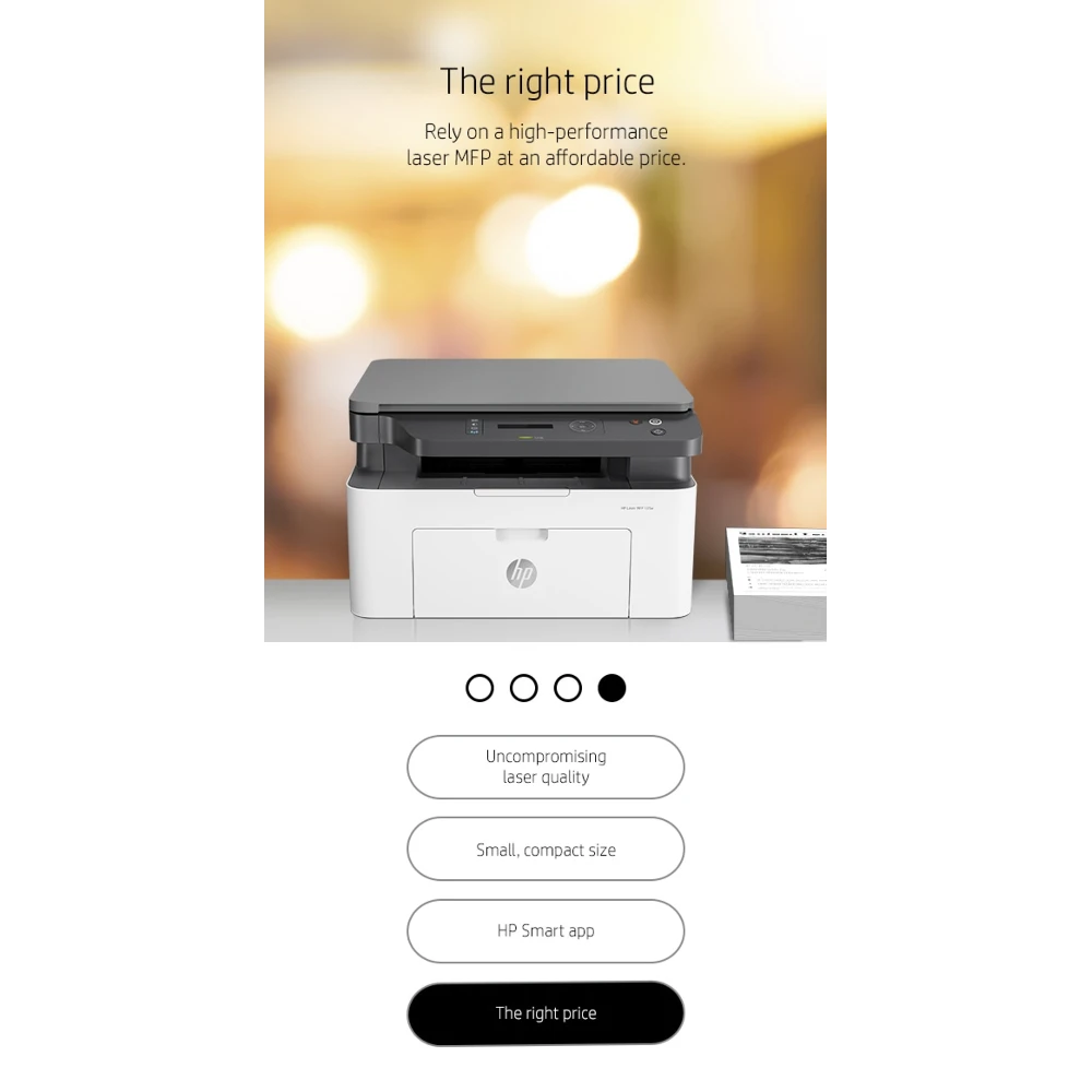 Laser MFP 135w, Laser, 1200 x 1200dpi, 20ppm, A4, 600MHz, 128MB, WiFi, USB, LCD Laser MFP performance at an affordable price Get productive MFP performance at an affordable price. Print, scan, and copy, produce high-quality results, and print and scan from your phone.[1]