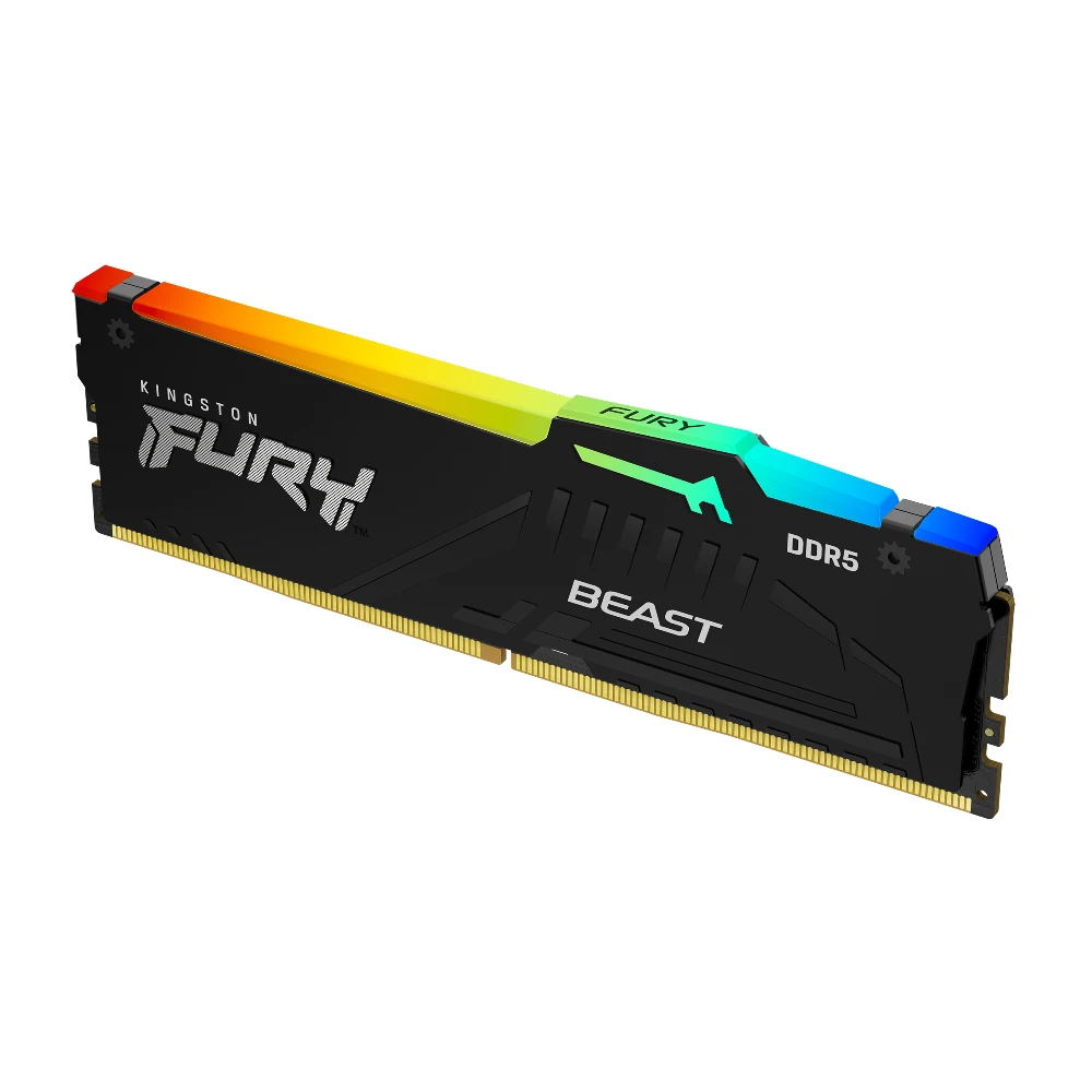 8GB 5200MT/s DDR5 CL36 DIMM FURY Beast RGB EXPO Kingston Technology FURY Beast 8GB 5200MT/s DDR5 CL36 DIMM RGB EXPO. Component for: PC/Server, Internal memory: 8 GB, Memory layout (modules x size): 1 x 8 GB, Internal memory type: DDR5, Memory form factor: 288-pin DIMM, CAS latency: 36 Kingston FURY™ Beast DDR5 RGB** lets you overclock in style on next-gen gaming platforms with cutting-edge technology. Experience the superior speed advancements of DDR5 with double the banks and double the burst length.