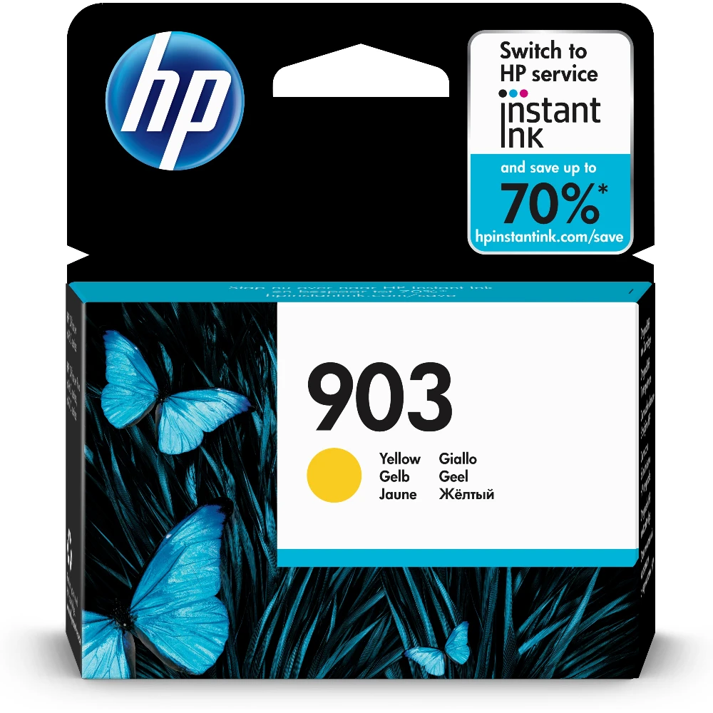 903 Yellow Original Ink Cartridge HP 903 Yellow Original Ink Cartridge. Cartridge capacity: Standard Yield, Colour ink type: Pigment-based ink, Supply type: Single pack, Colour ink page yield: 315 pages, Quantity per pack: 1 pc(s) HP 903 Ink Cartridge, yellow Ideal for busy entrepreneurs and small-business owners who want to make a professional impression and serve the bottom line.