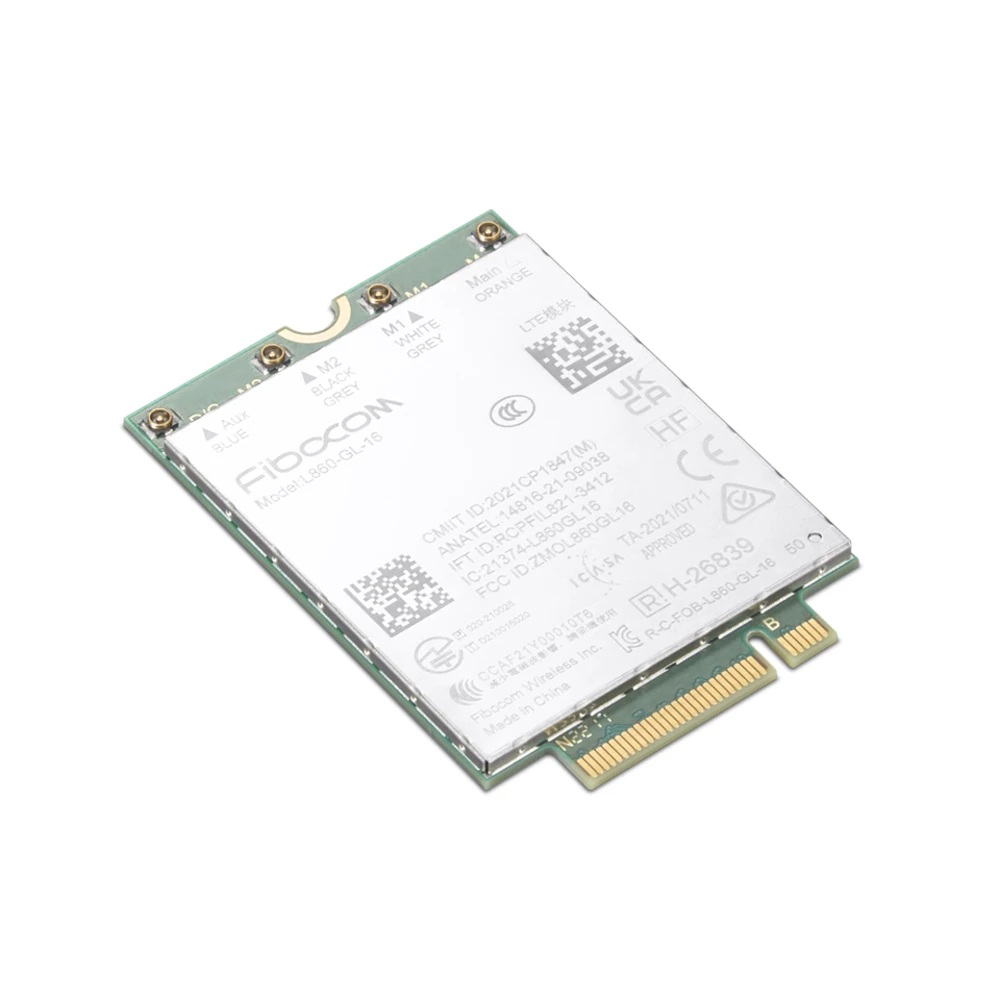 Fibocom L860-GL-16 4G LTE CAT16 M.2 WWAN Lenovo 4XC1M72794. Internal. Connectivity technology: Wireless, Host interface: M.2, Interface: WWAN. Maximum data transfer rate: 1000 Mbit/s ThinkPad Fibocom L860-GL-16 4G LTE CAT16 M.2 WWAN Module is a wireless communication module with receive diversity. It helps provide data connectivity and network with PCIe Gen2 M.2 interface. With downlink speed up to 1Gbps and uplink speed up to 150 Mbps, the 4G LTE CAT16 WWAN module enhances the network reliability and availability of your ThinkPad, and provides a great cellular solution for travelers to sustain mobility while using PC devices.