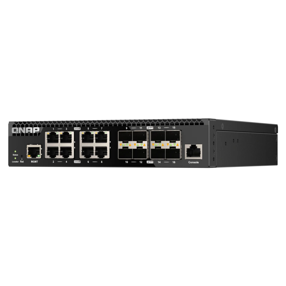 The QSW-M3216R-8S8T uses the QNAP Switch System (QSS), featuring an easy-to-use Web GUI with Layer 2 management and value-added functions to simplify network set up and management.