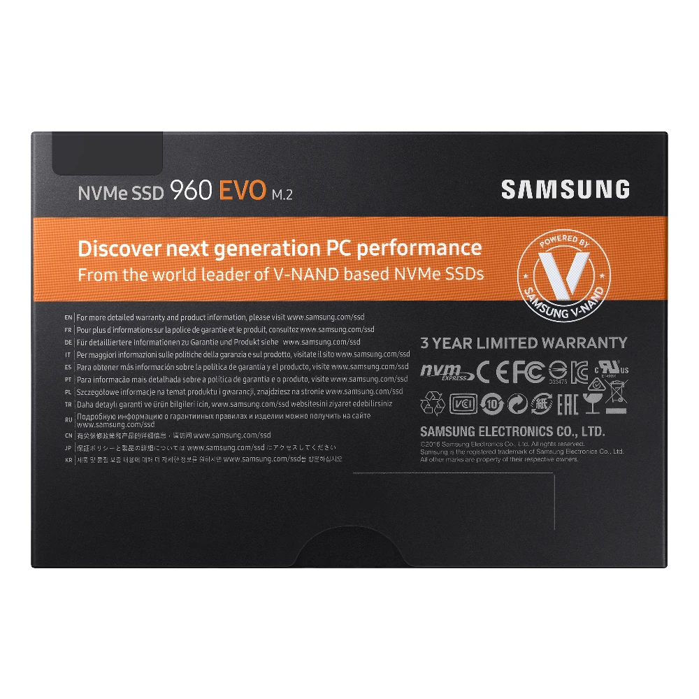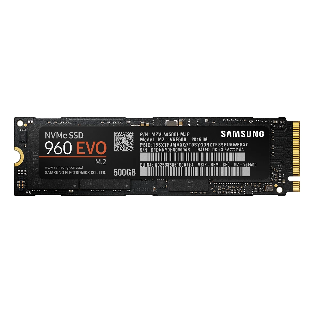 Samsung 960 EVO. SSD capacity: 500 GB, SSD form factor: M.2, Read speed: 3200 MB/s, Write speed: 1800 MB/s