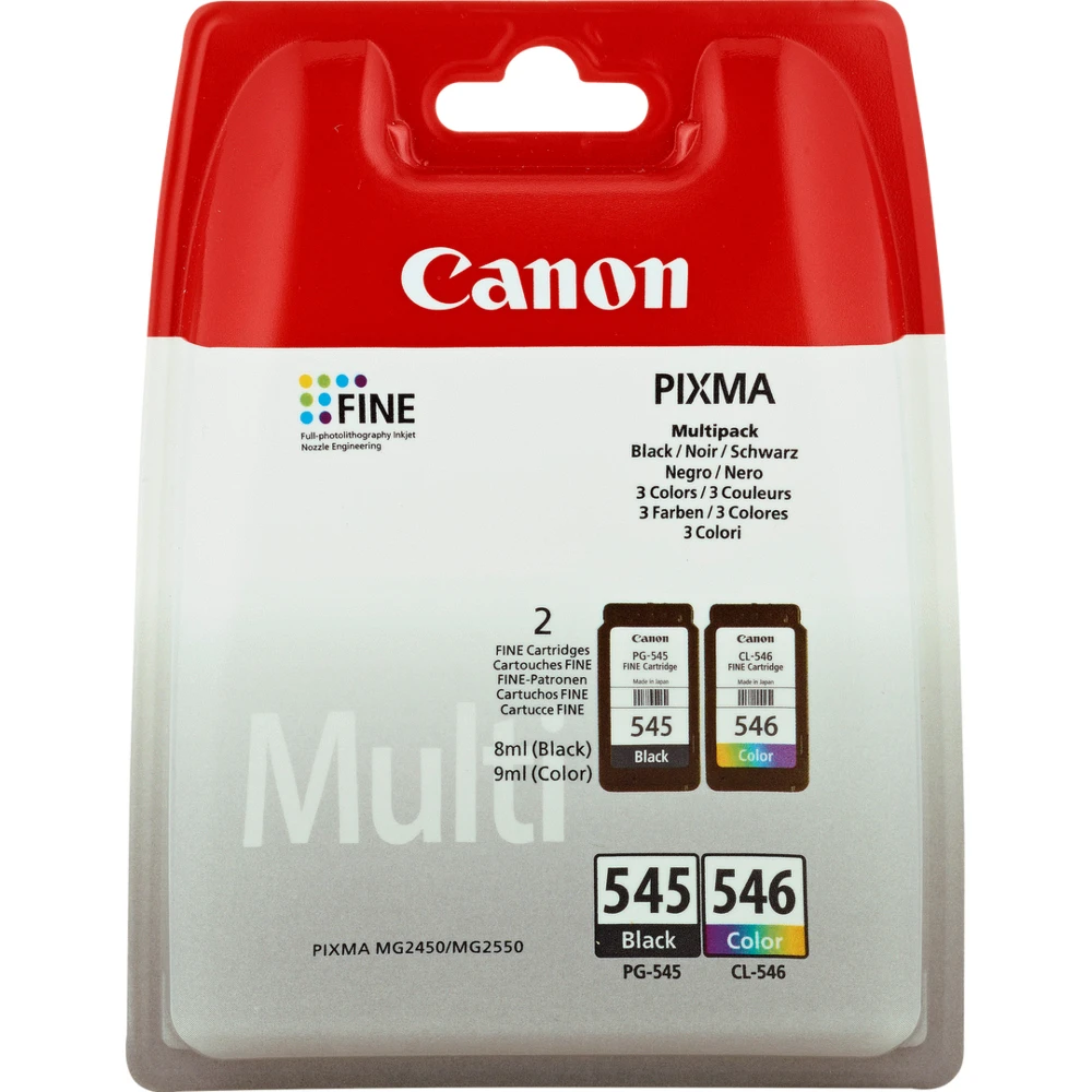 Canon PG-545/CL-546 Multipack. Black ink type: Pigment-based ink, Supply type: Multi pack, Printing colours: Black, Cyan, Magenta, Yellow, Quantity per pack: 2 pc(s)