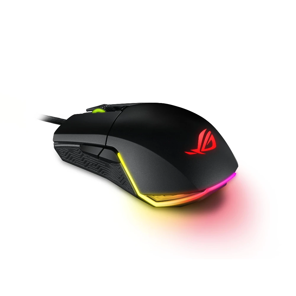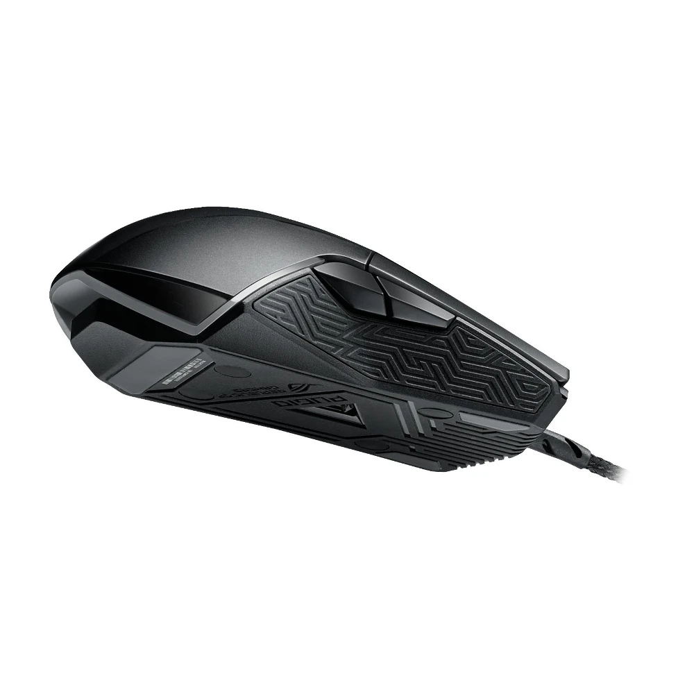 ROG Pugio will be the centerpiece of your battle station. With a quality gunmetal-gray finish, underside engravings, Mayan-inspired rubber side panels for a secure and comfortable grip, and angular ASUS Aura RGB light channels, the Pugio is a stunning weapon from every angle. Customizable Aura RGB lighting, offering a palette of over millions of colors and six preset lighting effects, lets you take style to the next level!
