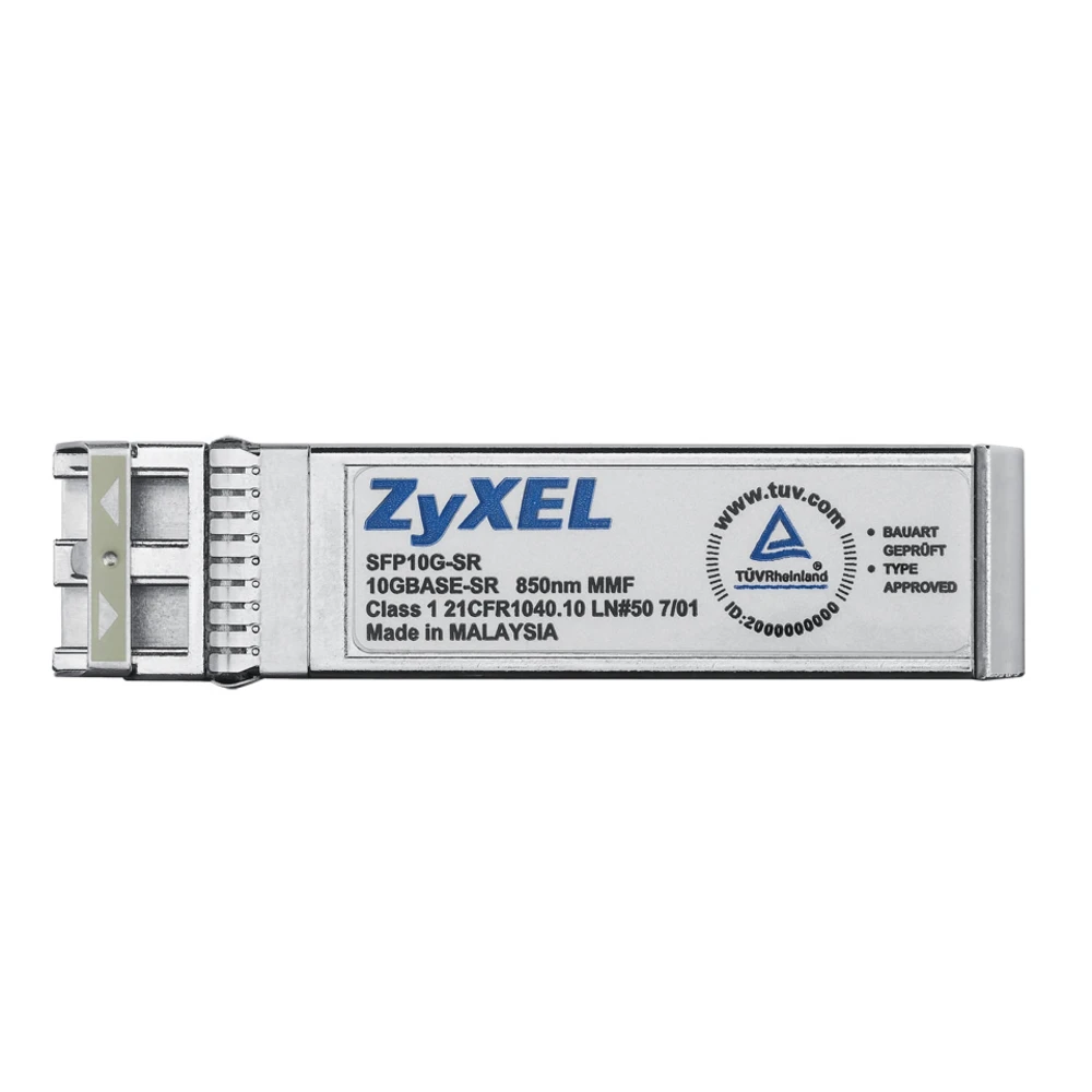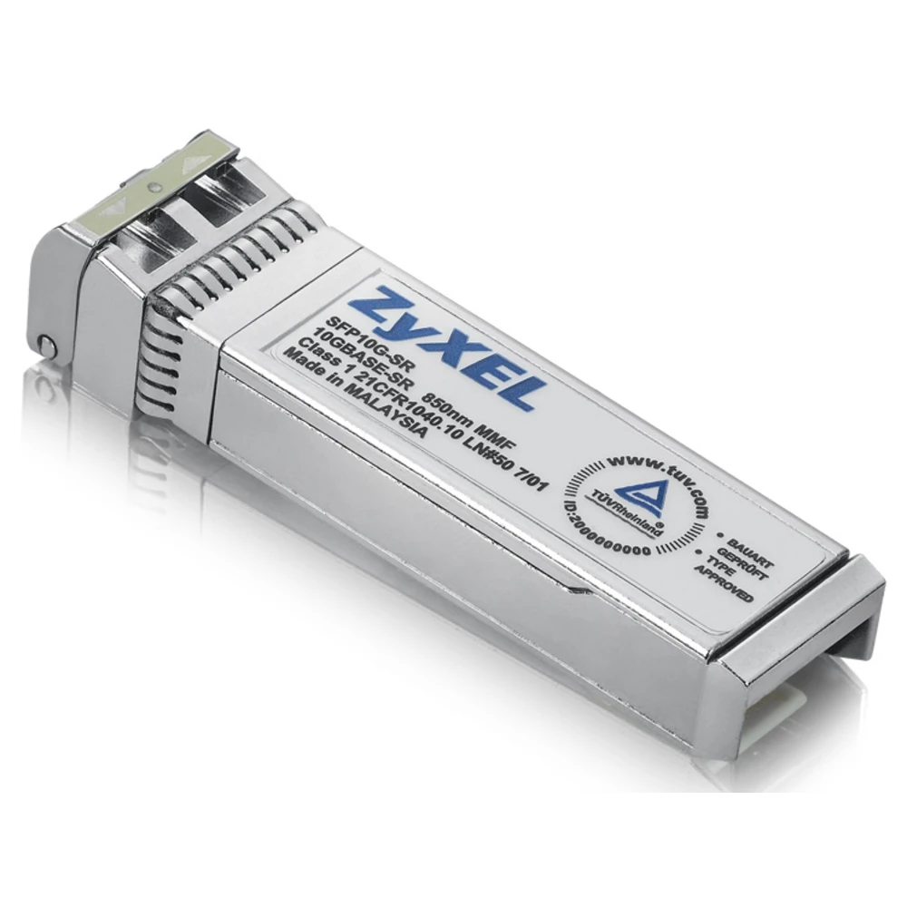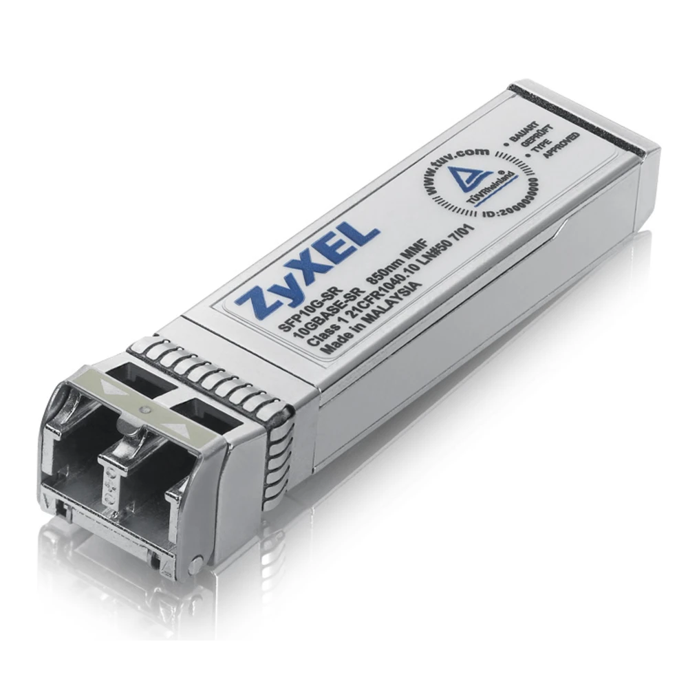 SFP10G-SR, SFP Plus Transceiver Zyxel SFP10G-SR. SFP transceiver type: Fiber optic, Maximum data transfer rate: 10000 Mbit/s, Interface type: SFP+. Width: 14.8 mm, Depth: 56.5 mm, Height: 11.8 mm. Quantity per pack: 1 pc(s) - Hot-Pluggable with Maximum Flexibility